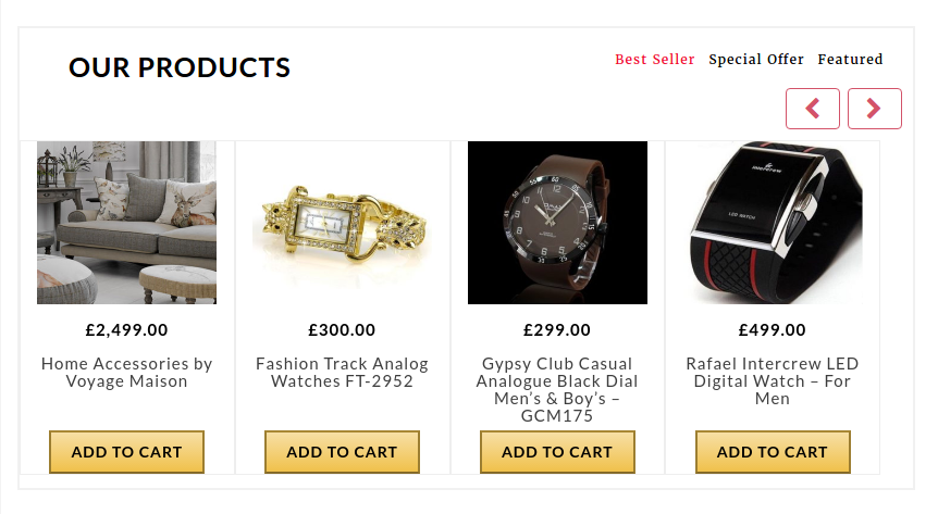 The category tabs are displayed in the Our Products section. As a result, you can choose your own product category and add a title to display in a certain tab.