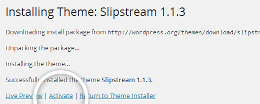 A success message and a link to activate and preview the theme will appear once your theme has been installed.