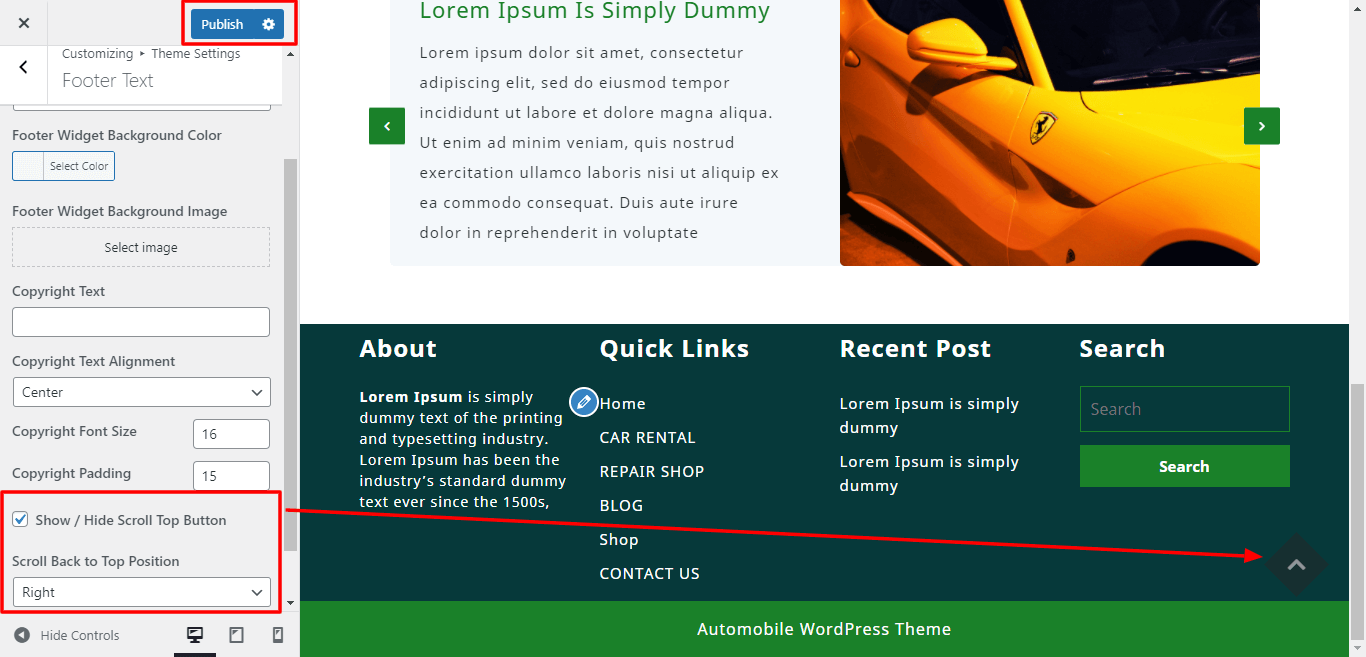 For show or hide Scroll Top Button, click twice on the checkbox and select the position for scroll top button.