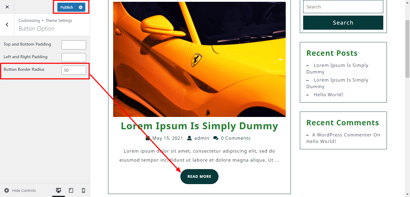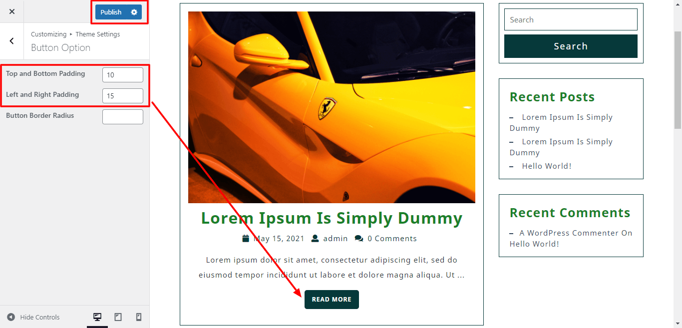 Here you can Give the Top-Bottom, Left-Right , Padding to the Button for the themes.