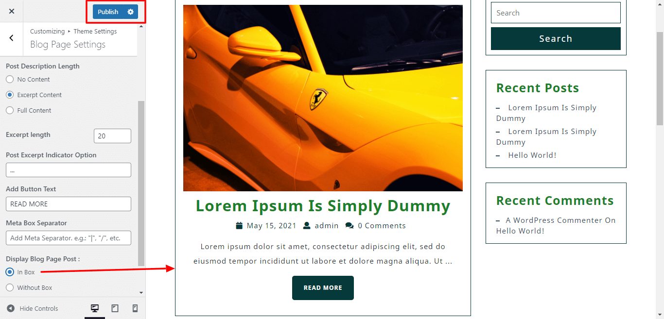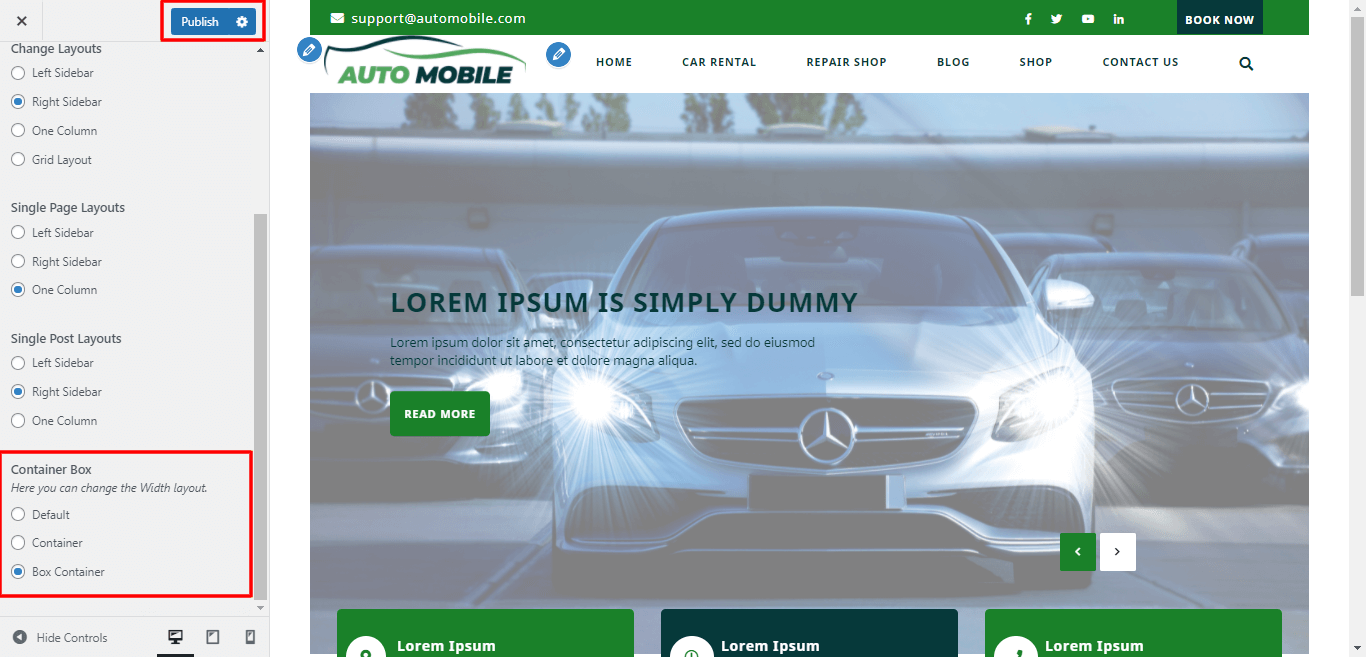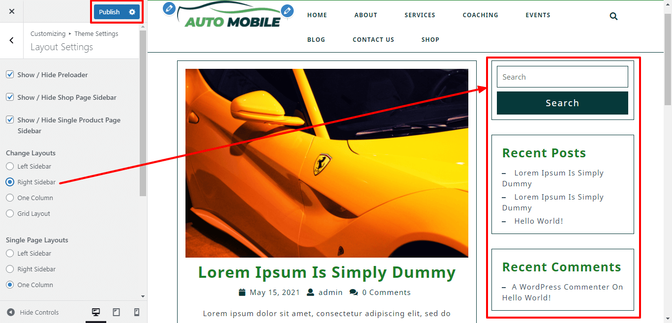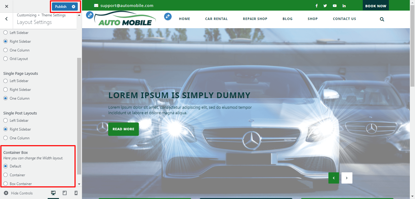 Go to Appearance >> Customize >> Themes Settings >> Layout Settings