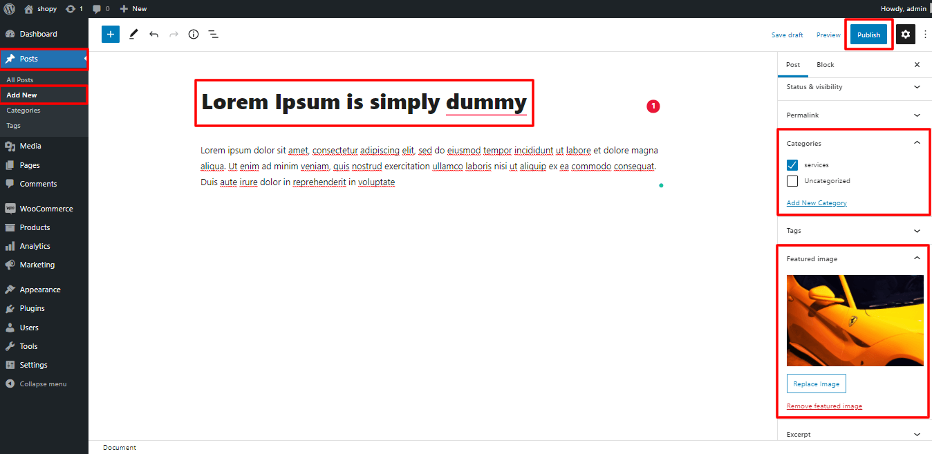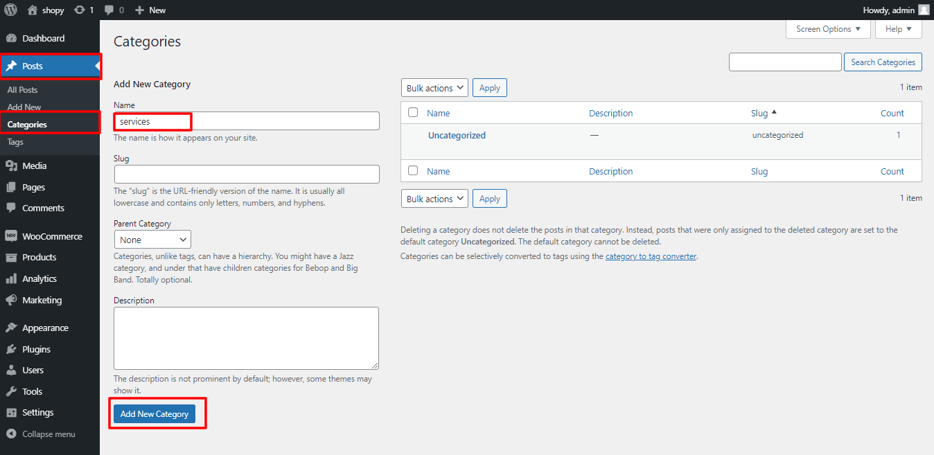 Go to Appearance >> Customize >> Post >> Categories >> Add New Category