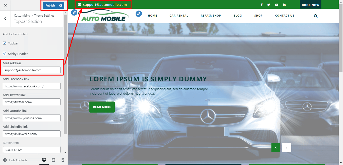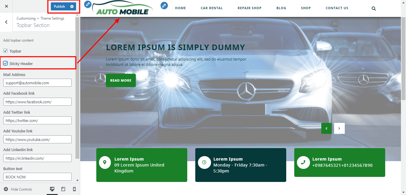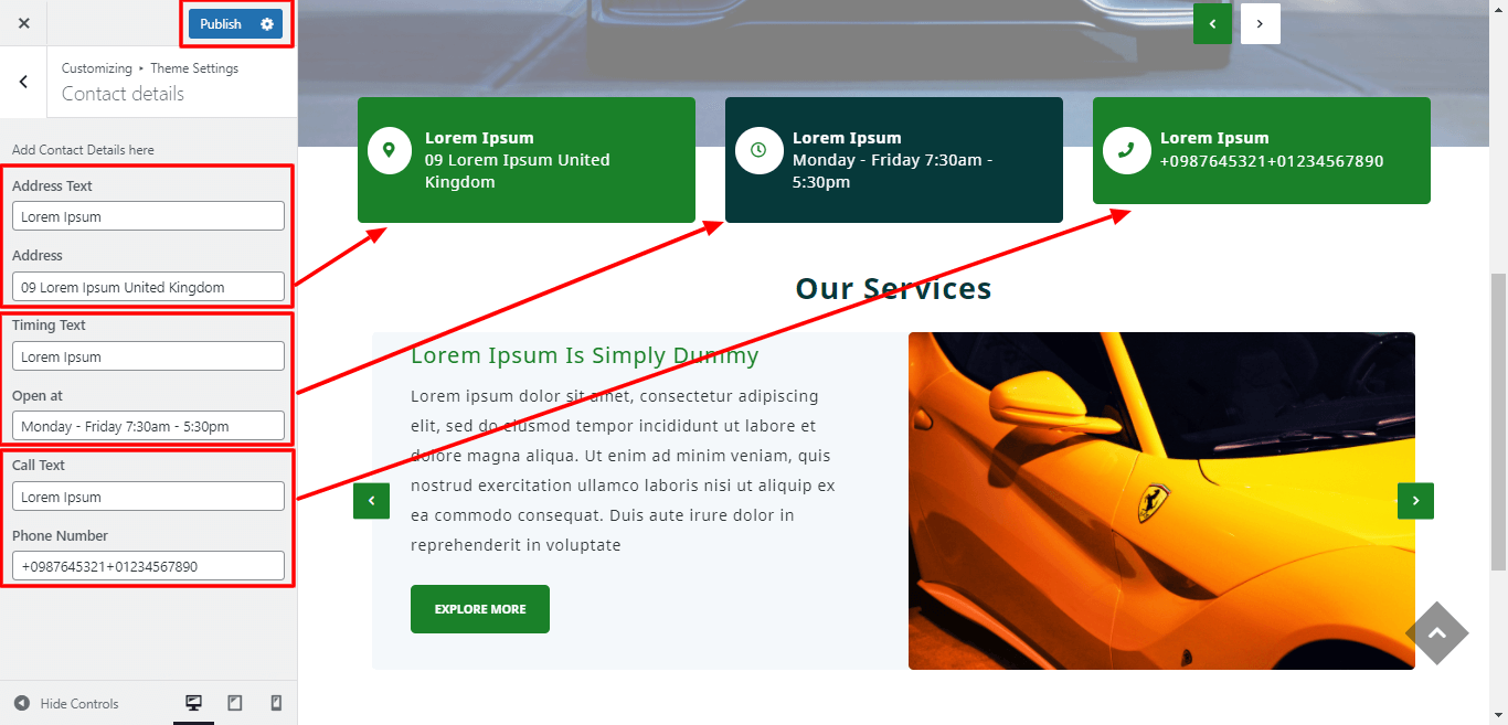 Go to Appearance >> Customize >> Themes Settings >> Contact Details