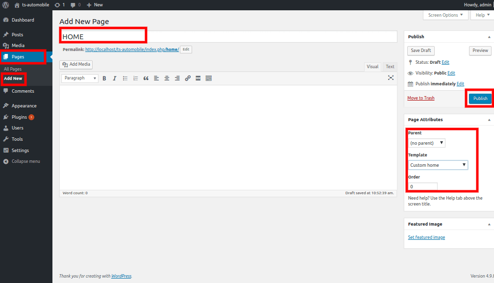 1. Create a new page and name it (Whatever the tittle you want to show on the slide) , set it's featured image, title, and the content. Repeat this process for other slides.