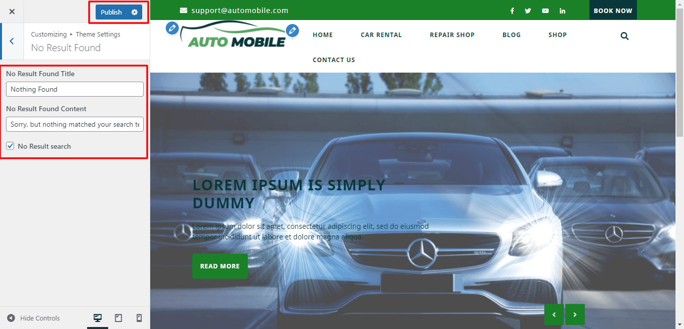 Go to Appearance >> Customize >> Themes Settings >> No Result Found