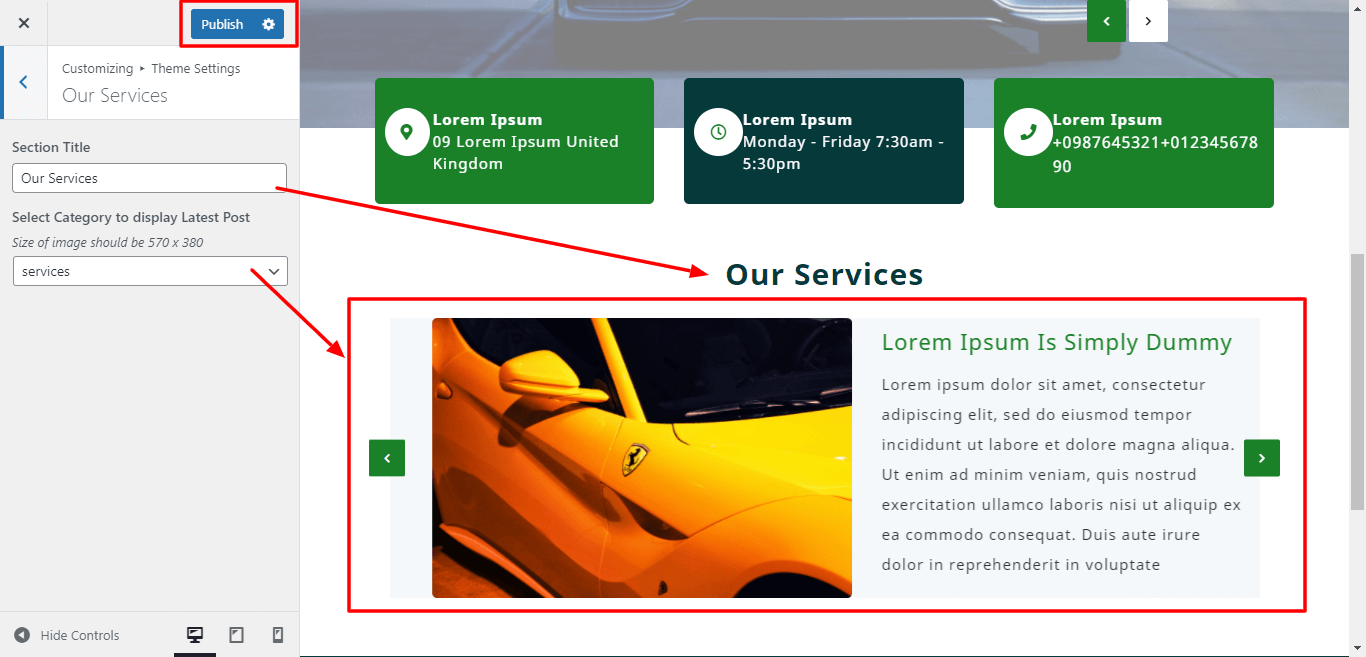 Go to Appearance >> Customize >> Theme Settings >> Our Services