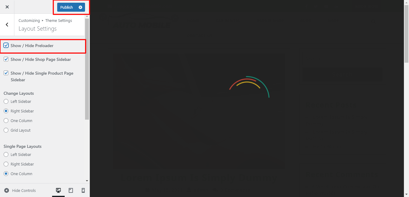 Here You can click the checkebox if you want to Enable / Disable preloader.