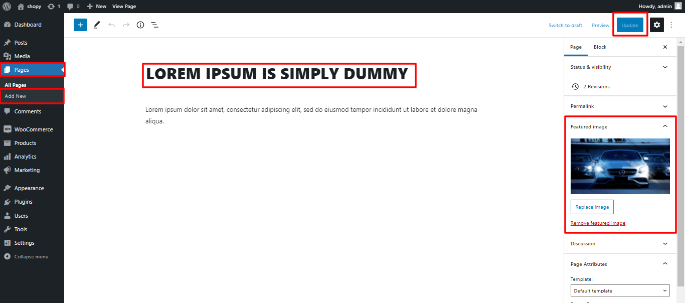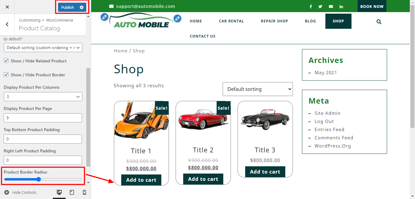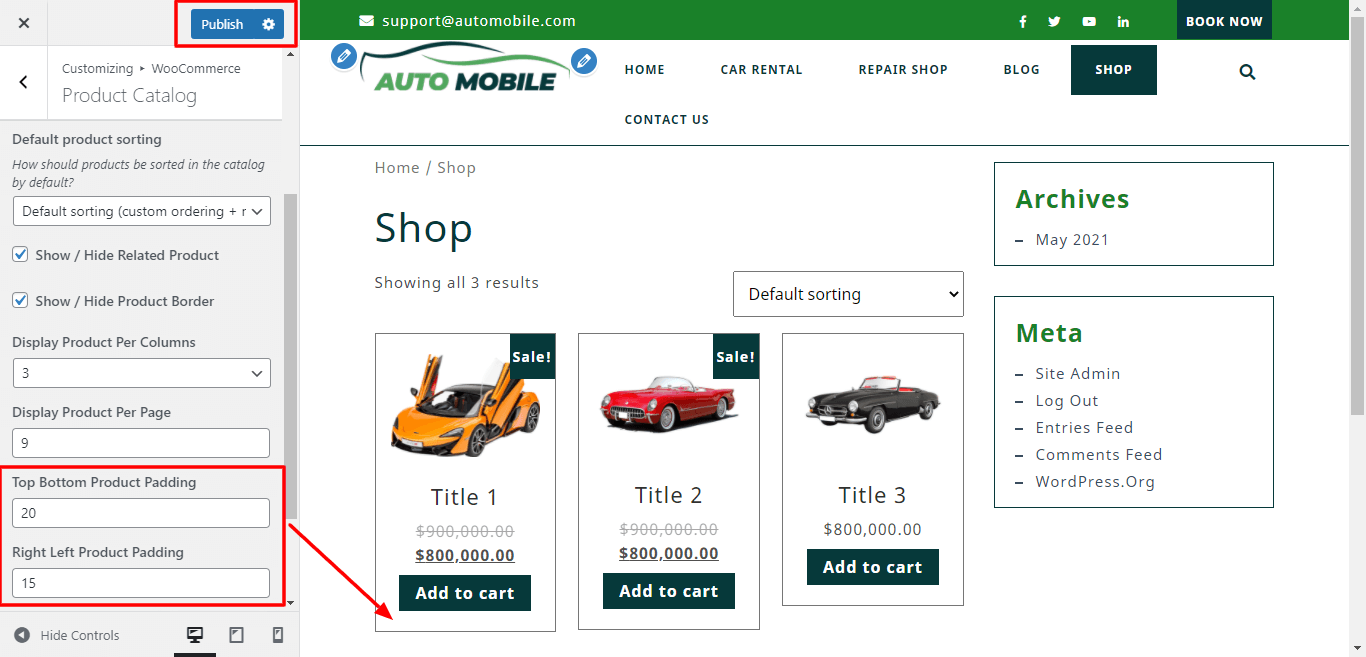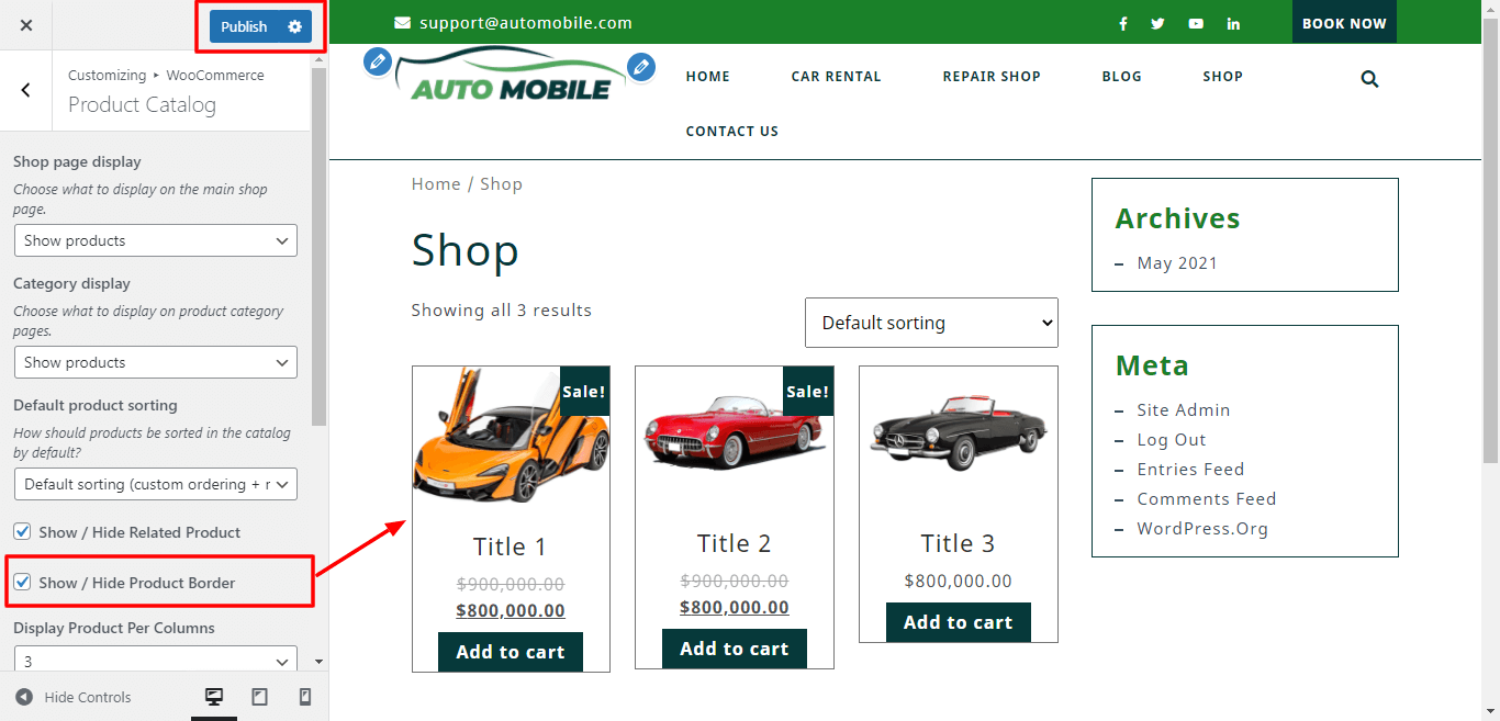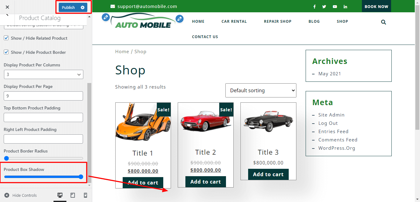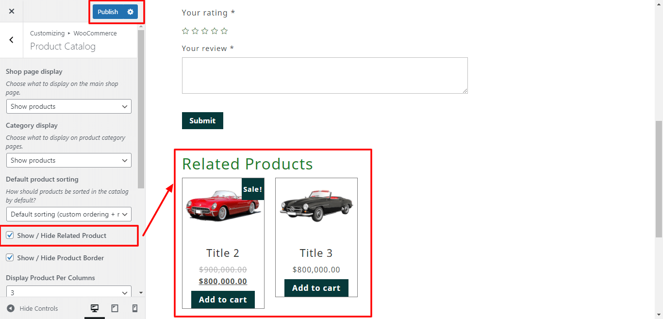 Here You have an option to Enable / Disable Feature Related product of shop page by click on checkbox.
