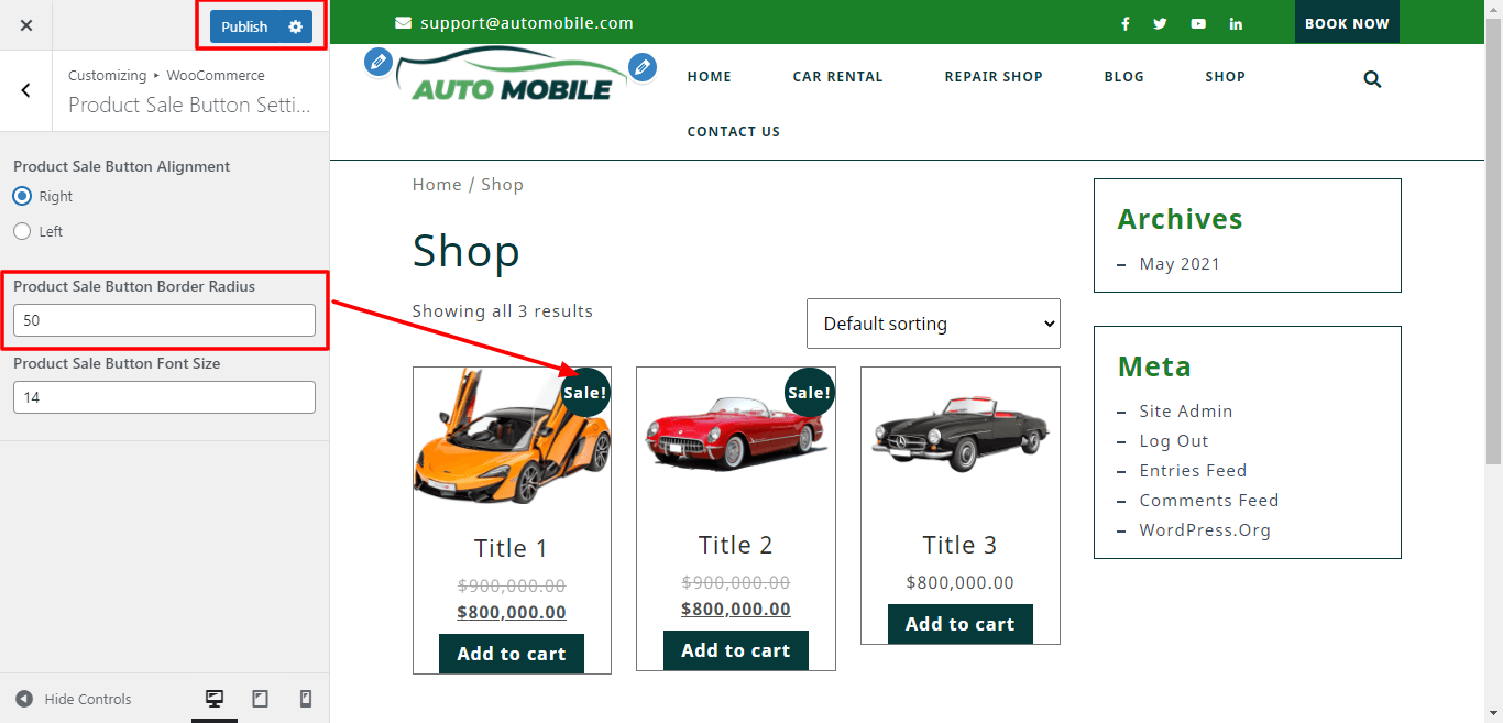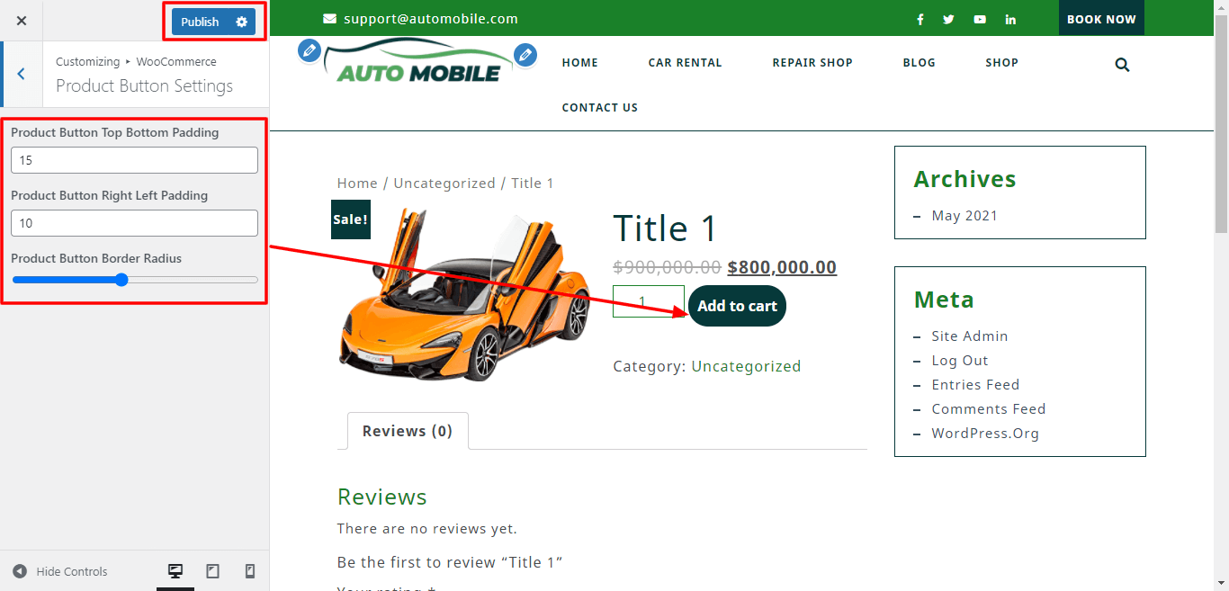 Here You have an option to add top-bottom, left-right padding product button and radius of product button for theme.