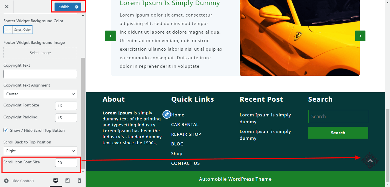 Here you can add the copyright text , copyright text alignment, copyright font size and padding for copyright text.