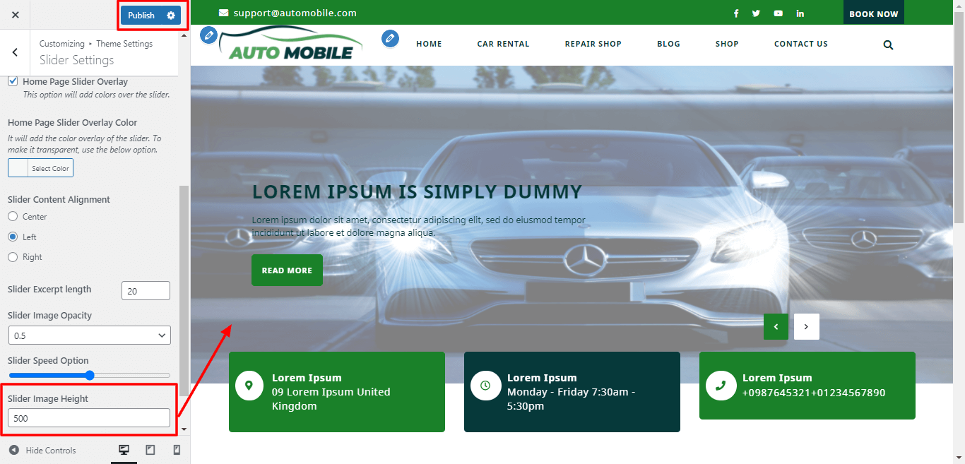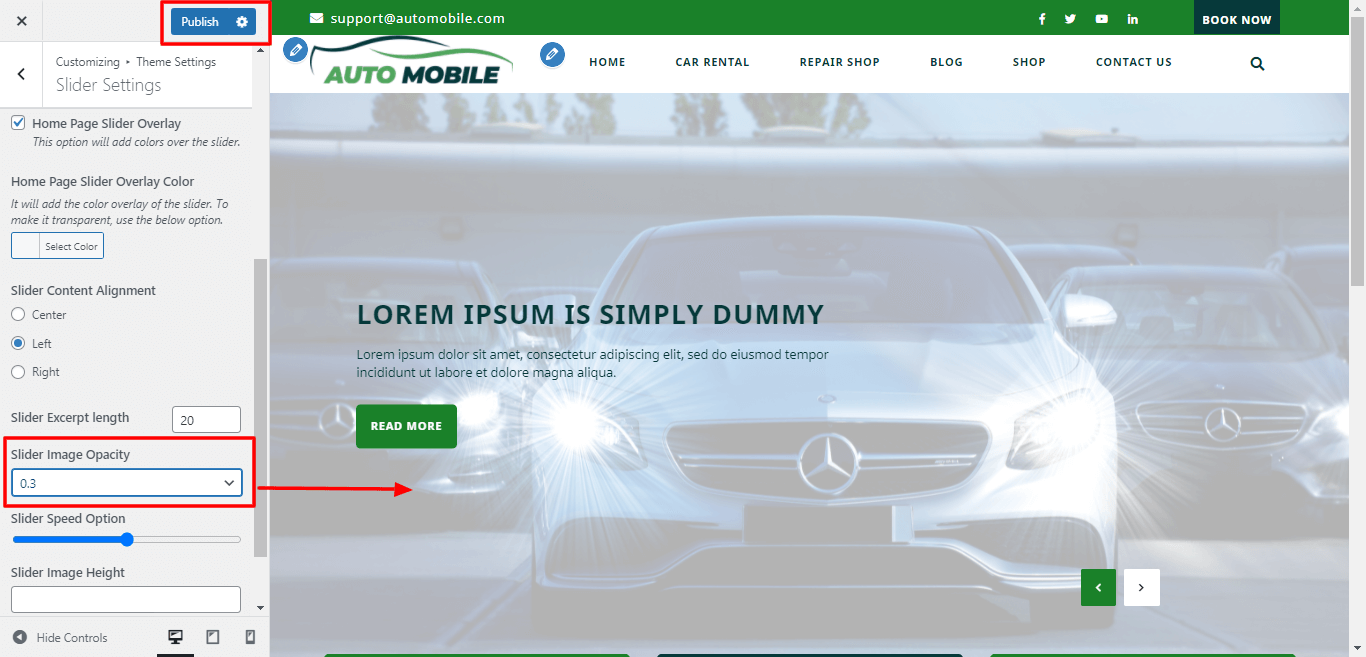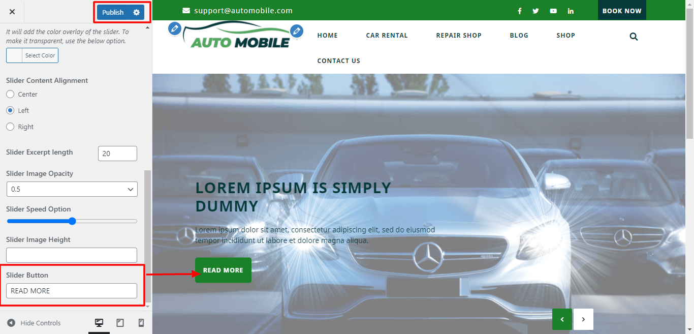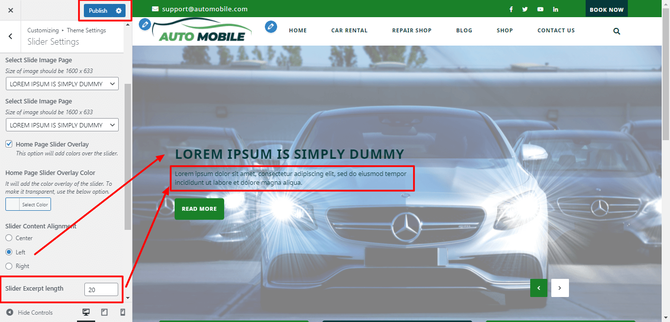 You can select the slider content alignment and select the slider excerpt length for slider content.