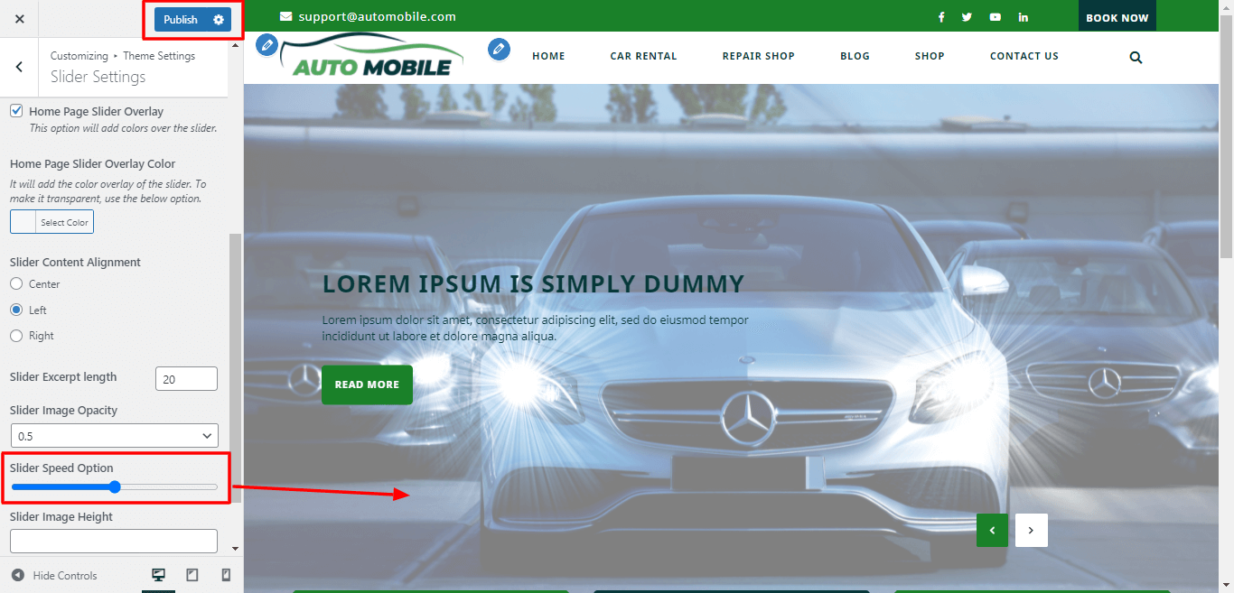 Here You have an option to the speed of slider to load slider fast for the theme.