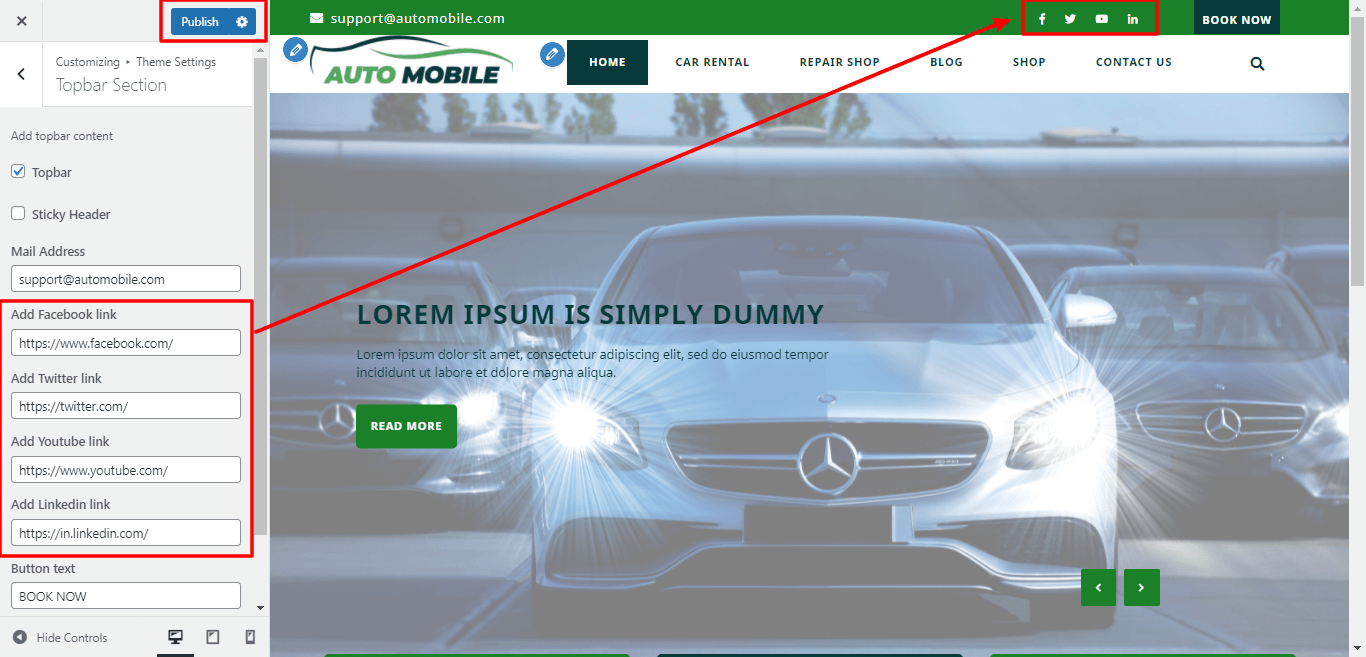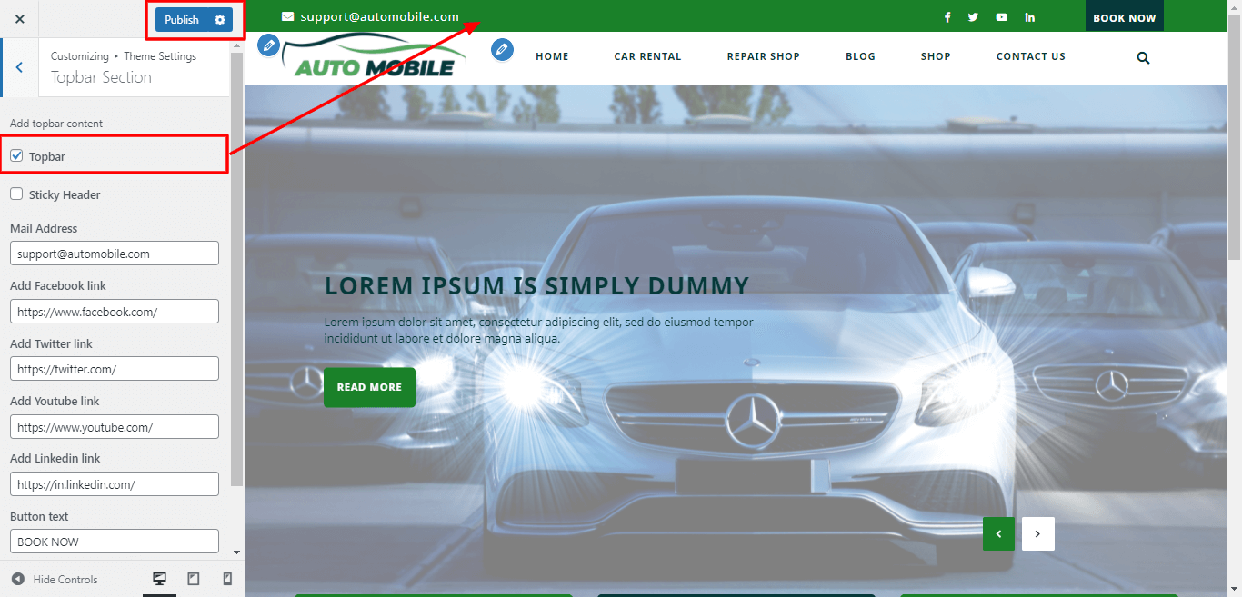 Go to Appearance >> Customize >> Theme Settings >> Topbar Section