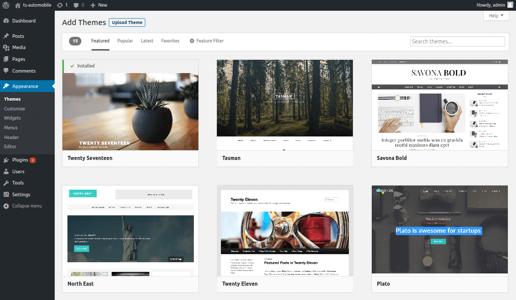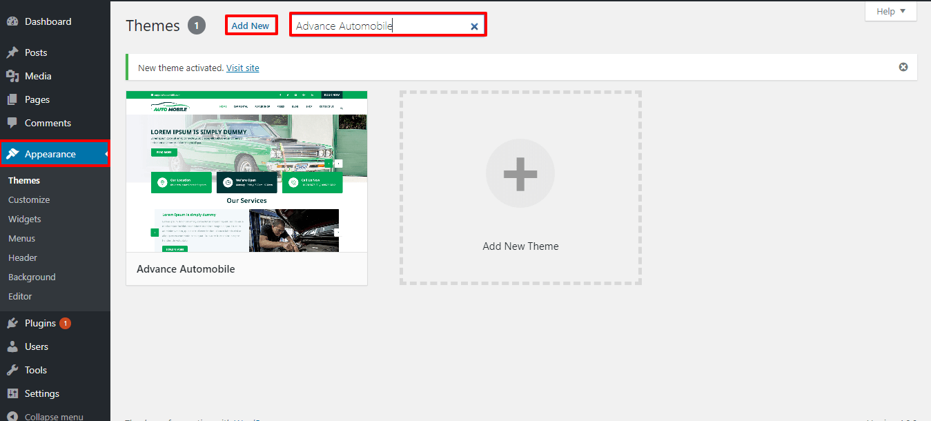 Based on your search, you will see a single theme or a list of themes that met your criteria. In our case, we searched for the theme Advance Automobile.