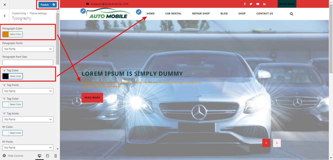 1. Color: Here you can change the colors of all Paragraph, 'a' tag, 'li' tag, H1, H2, H3, H4, H5 and H6 respectively.