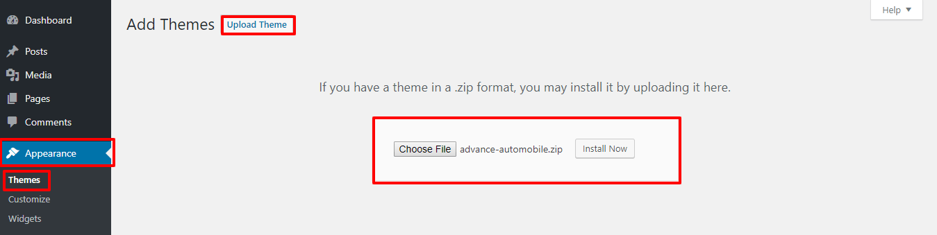 Remember you must unzip the folders before you upload a theme using FTP. Once you have uploaded the theme, you would need to go to your admin area and click on Appearance >> Themes.