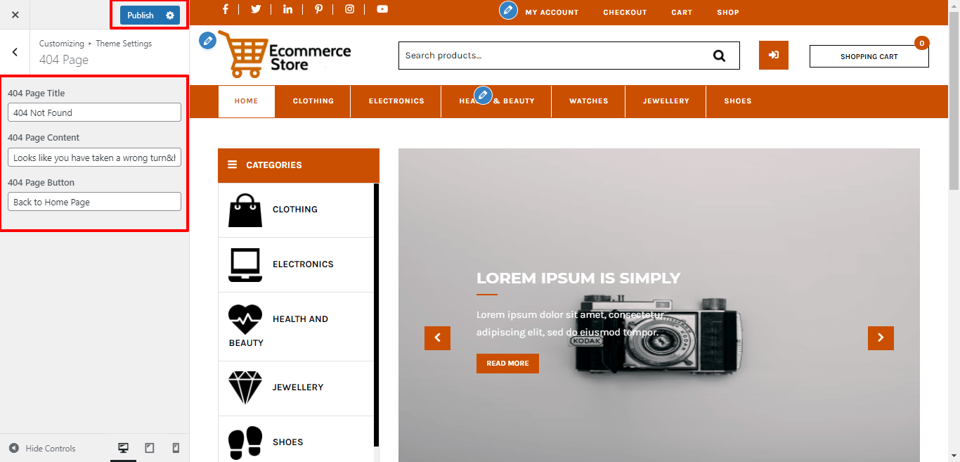 3. 404 Page Button: Here you can add 404 page button
