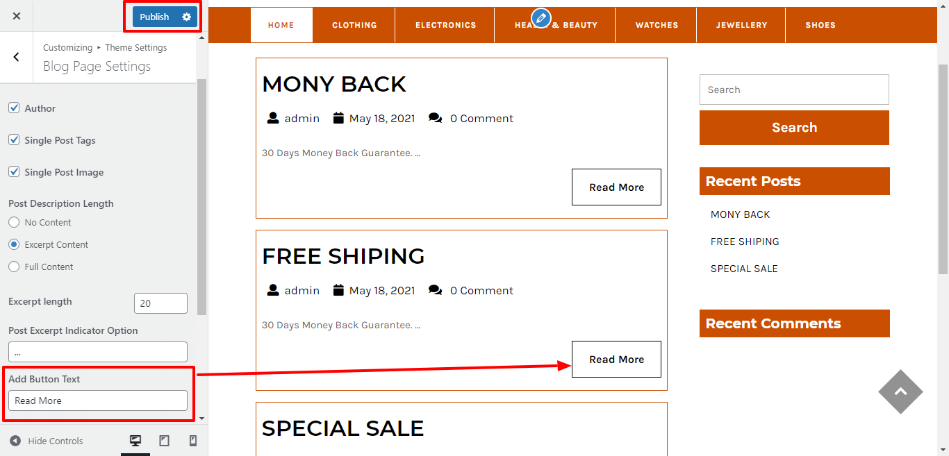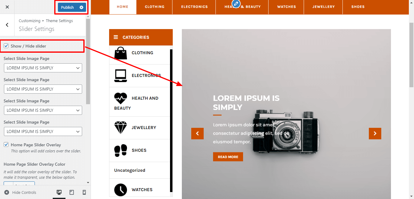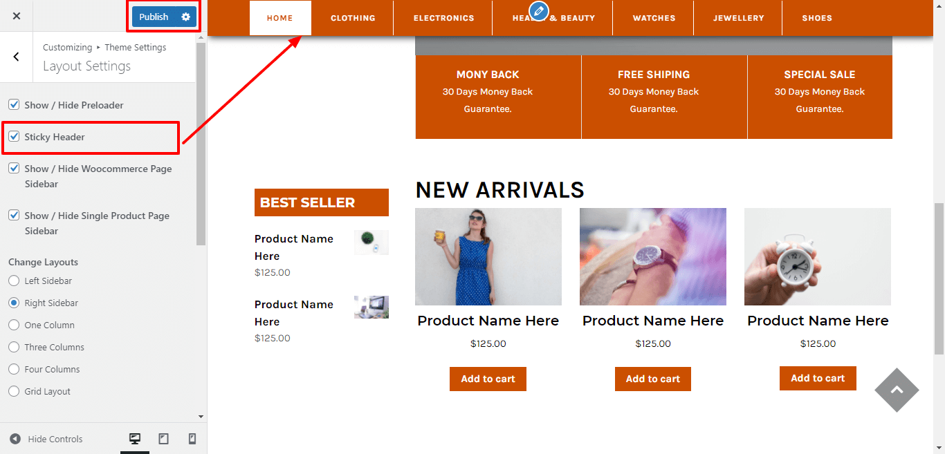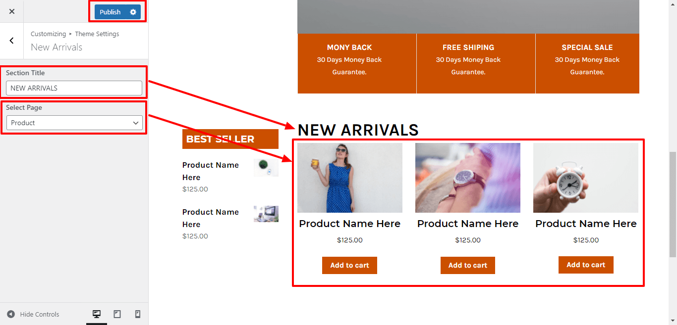 3. Go to Appearance >> Customize >>Theme setting >>New Arrivals