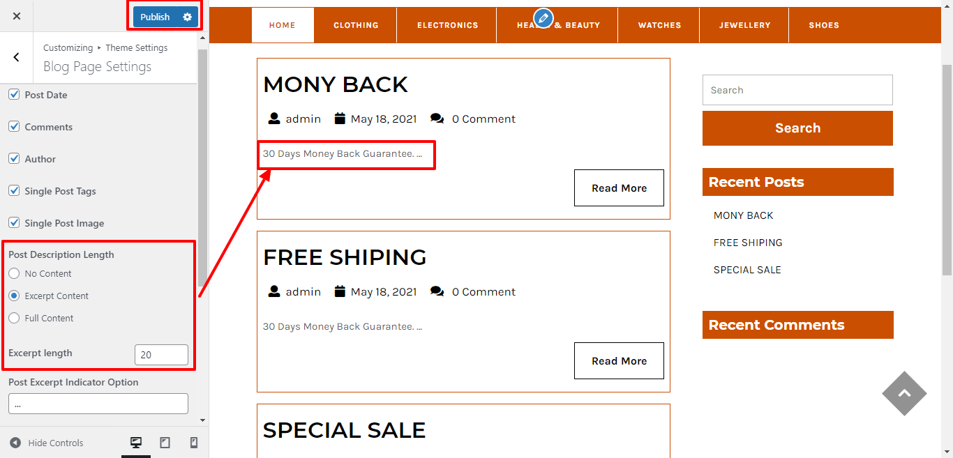 Here you can change excerpt length blog post content.