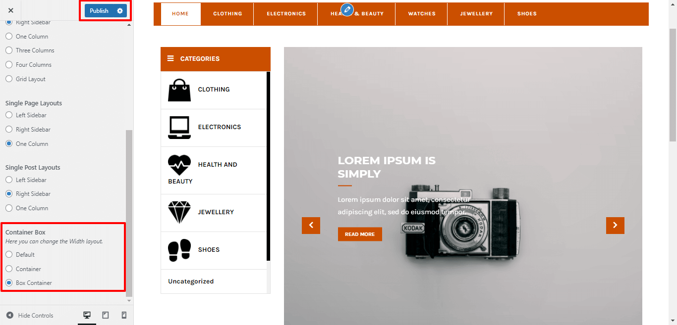 After Selecting Box-Container layout themes will look like screenshot
