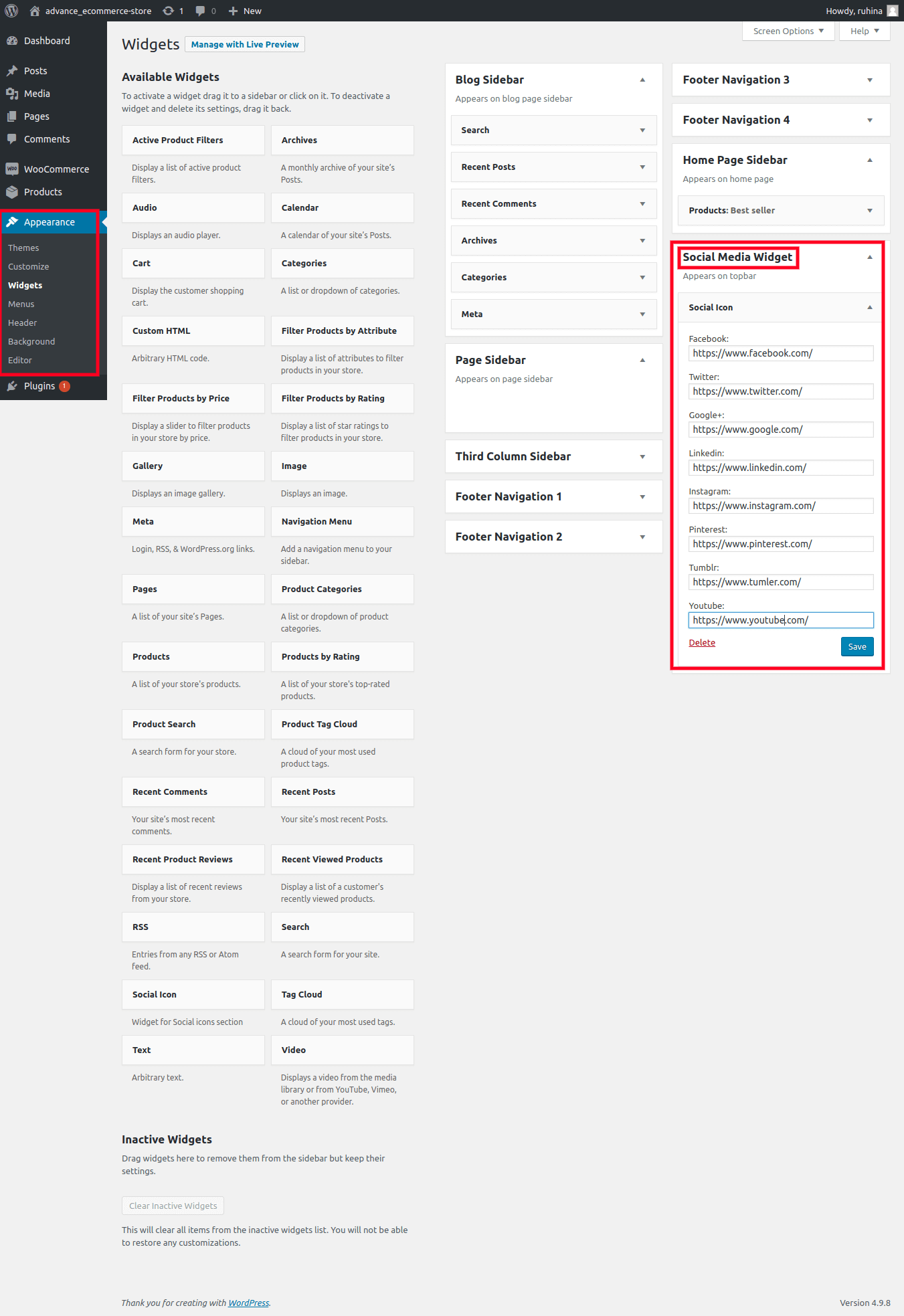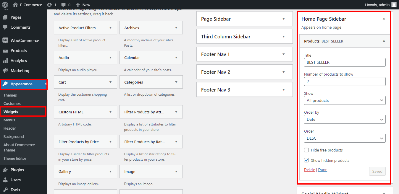 Go to Appearance >> Widgets