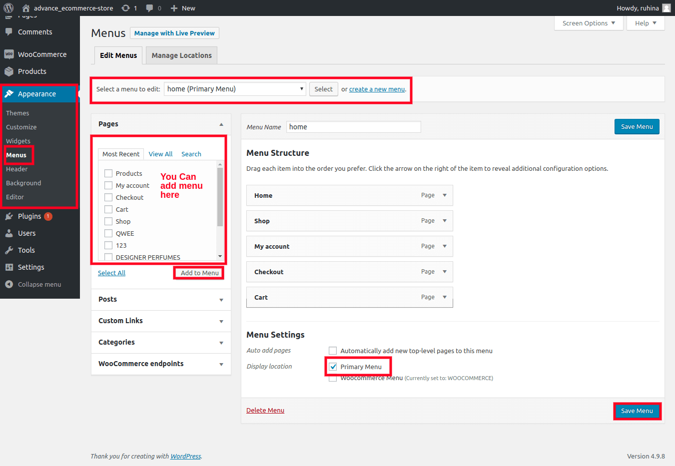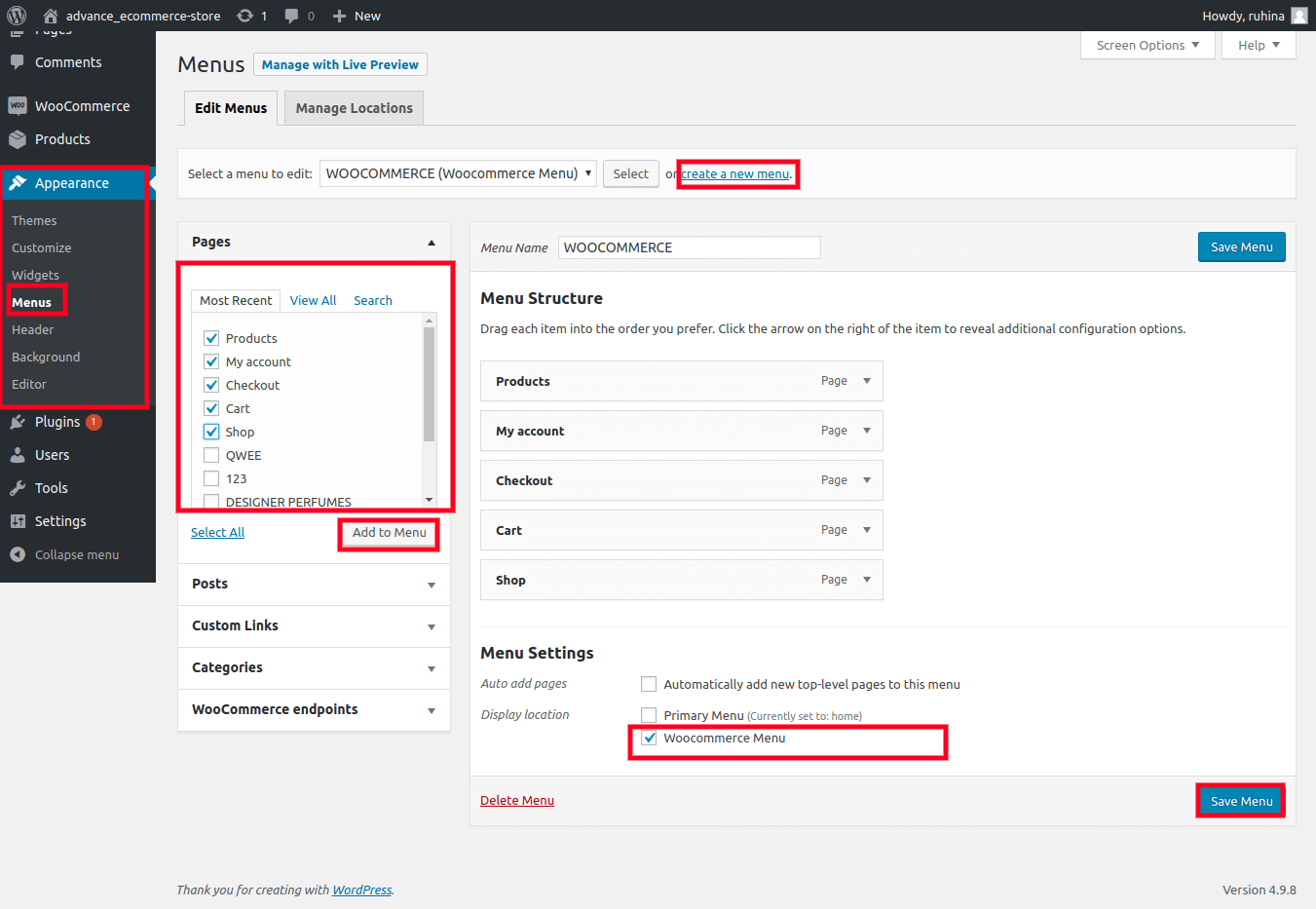 Woocommerce menu