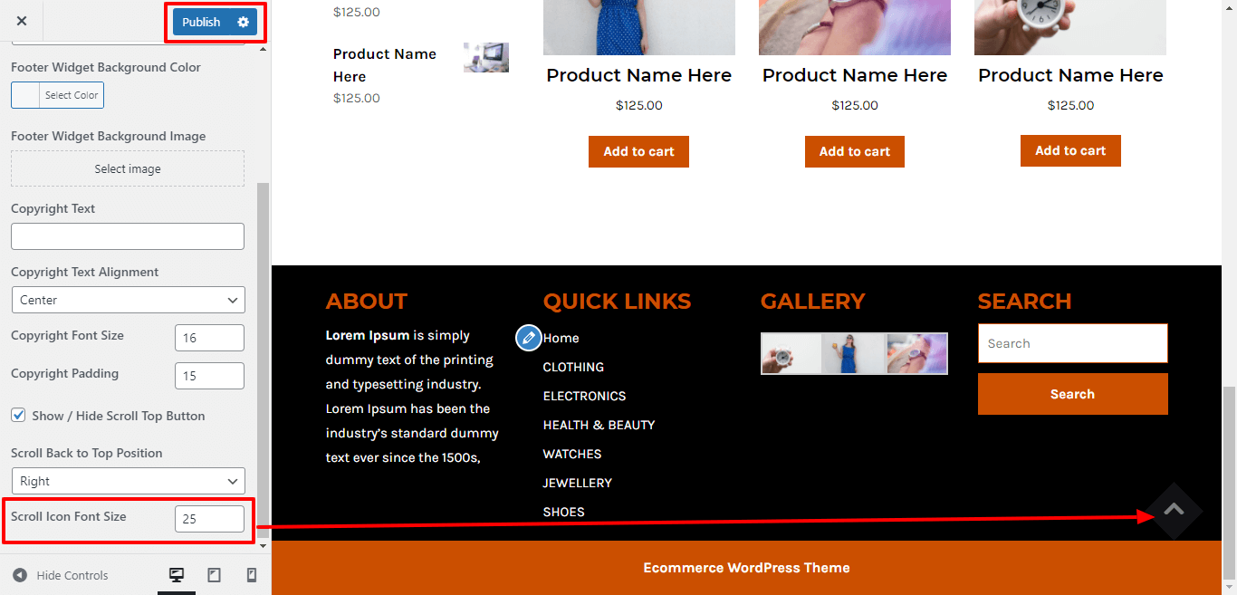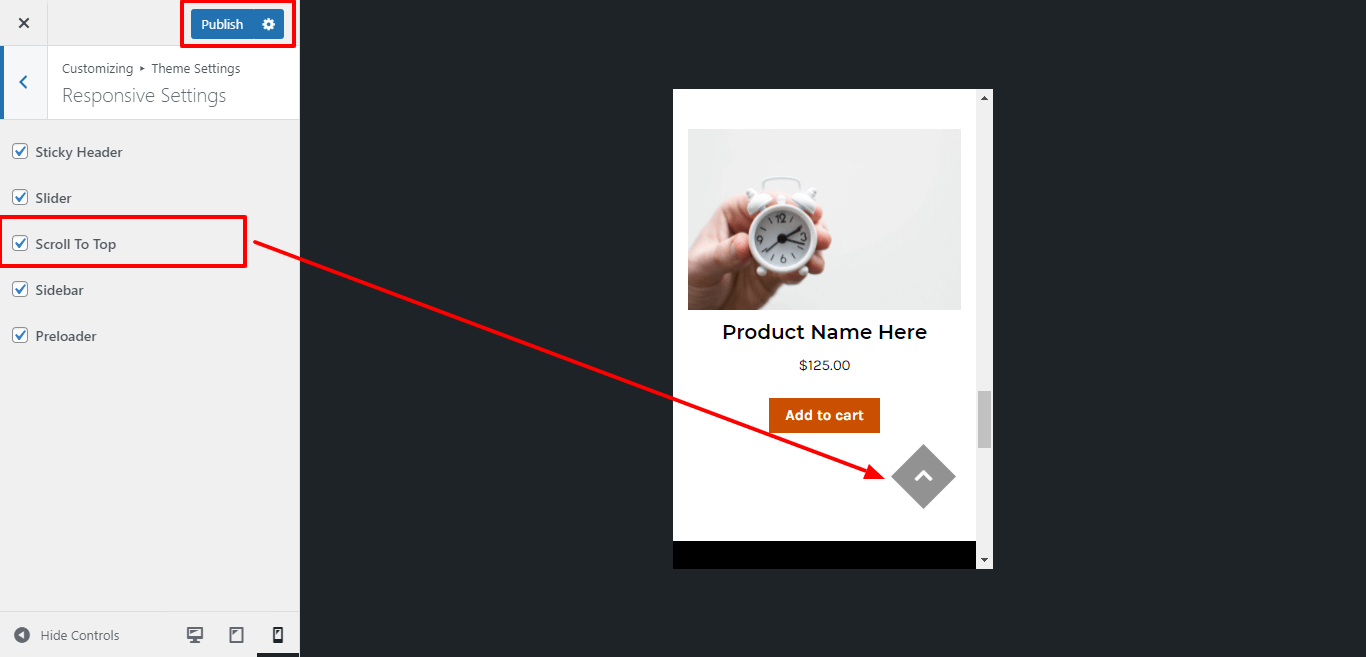 For show or hide Scroll Top Button, click twice on the checkbox and select the position for scroll top button.