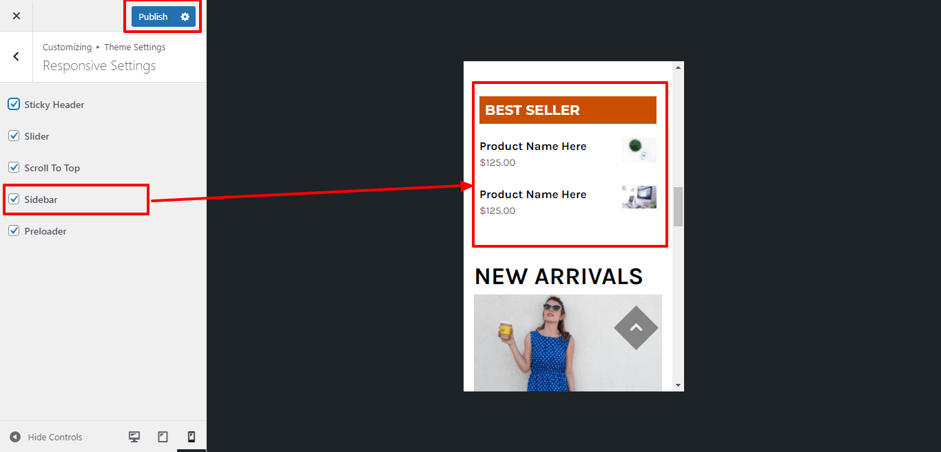 For Enable / Disable sidebar for mobile device or responsive media click on checkbox .
