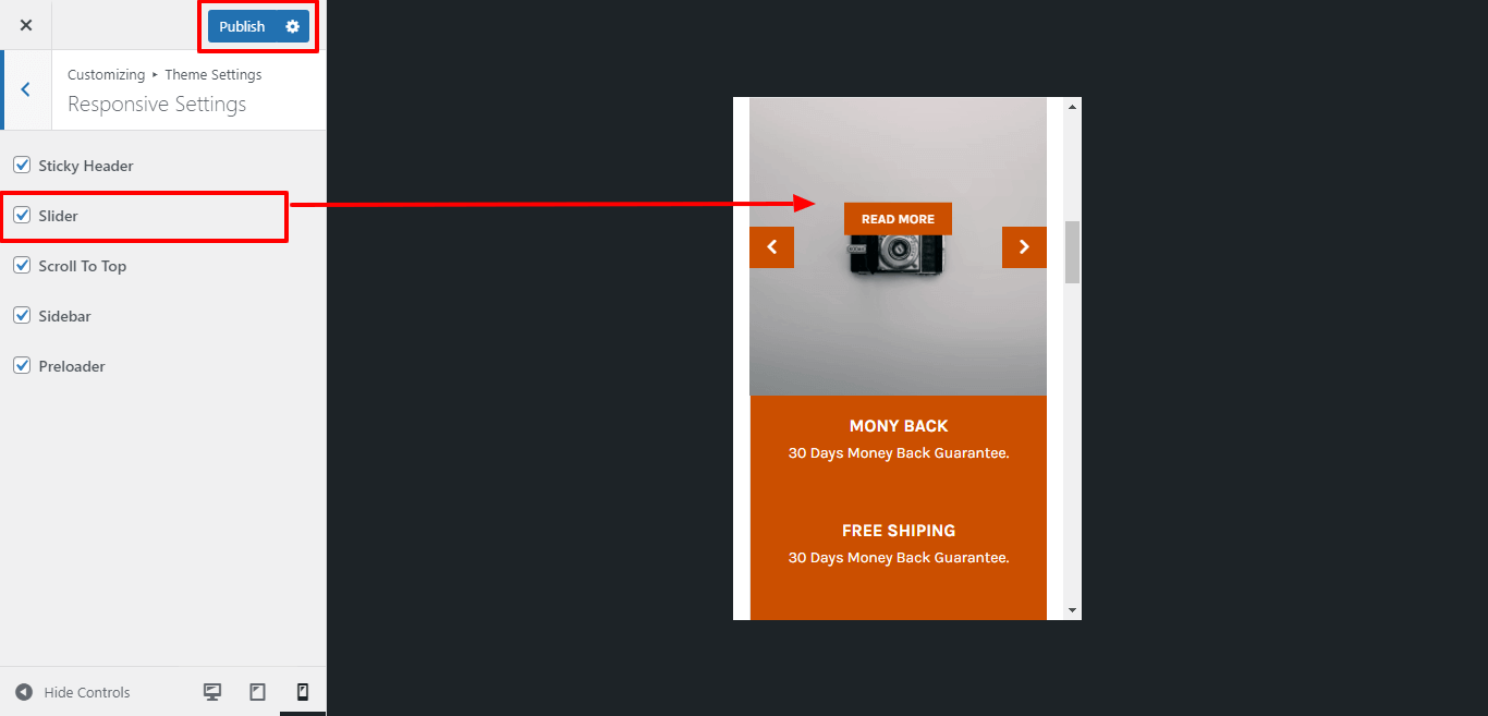 For Enable / Disable slider for mobile device or responsive media click on checkbox .