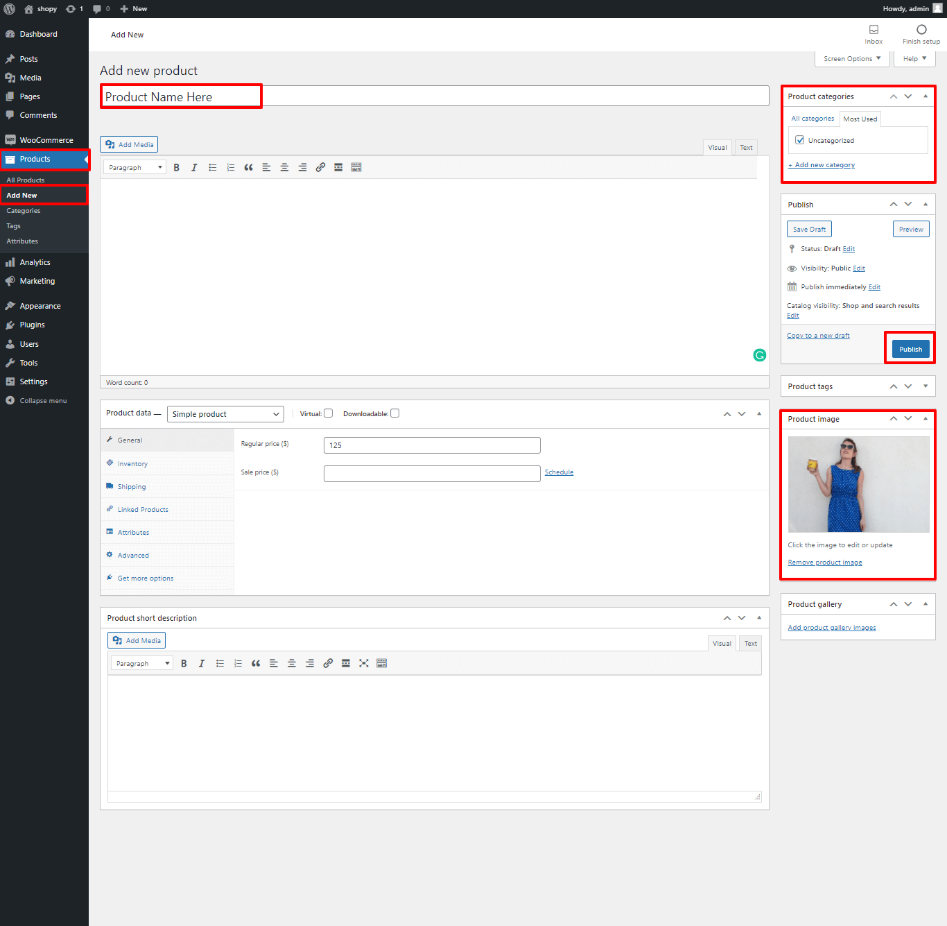 1. Go to Dashboard >> Products >> Add New