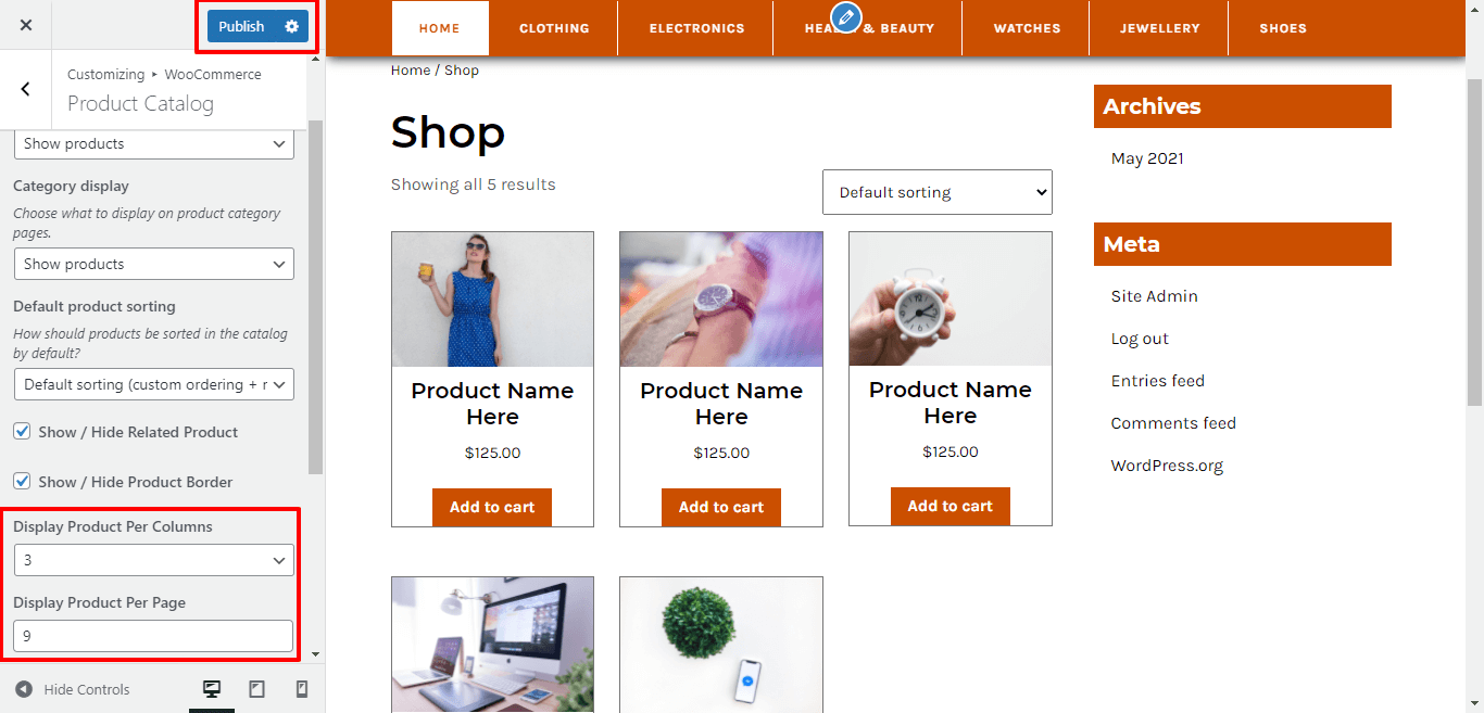 Here You have an option to add select the Number Of Product in one Row and single page.