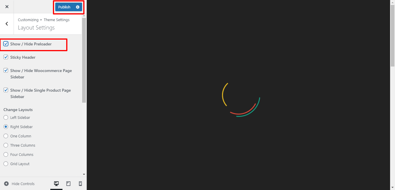Here You can click the checkebox if you want to Show / Hide preloader.