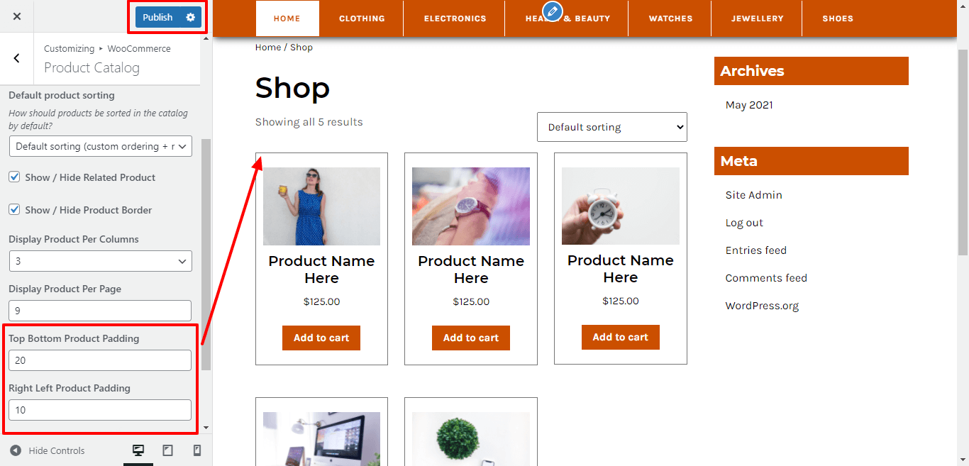 Here You have an option to top-bottom, left-right padding for product border and image.