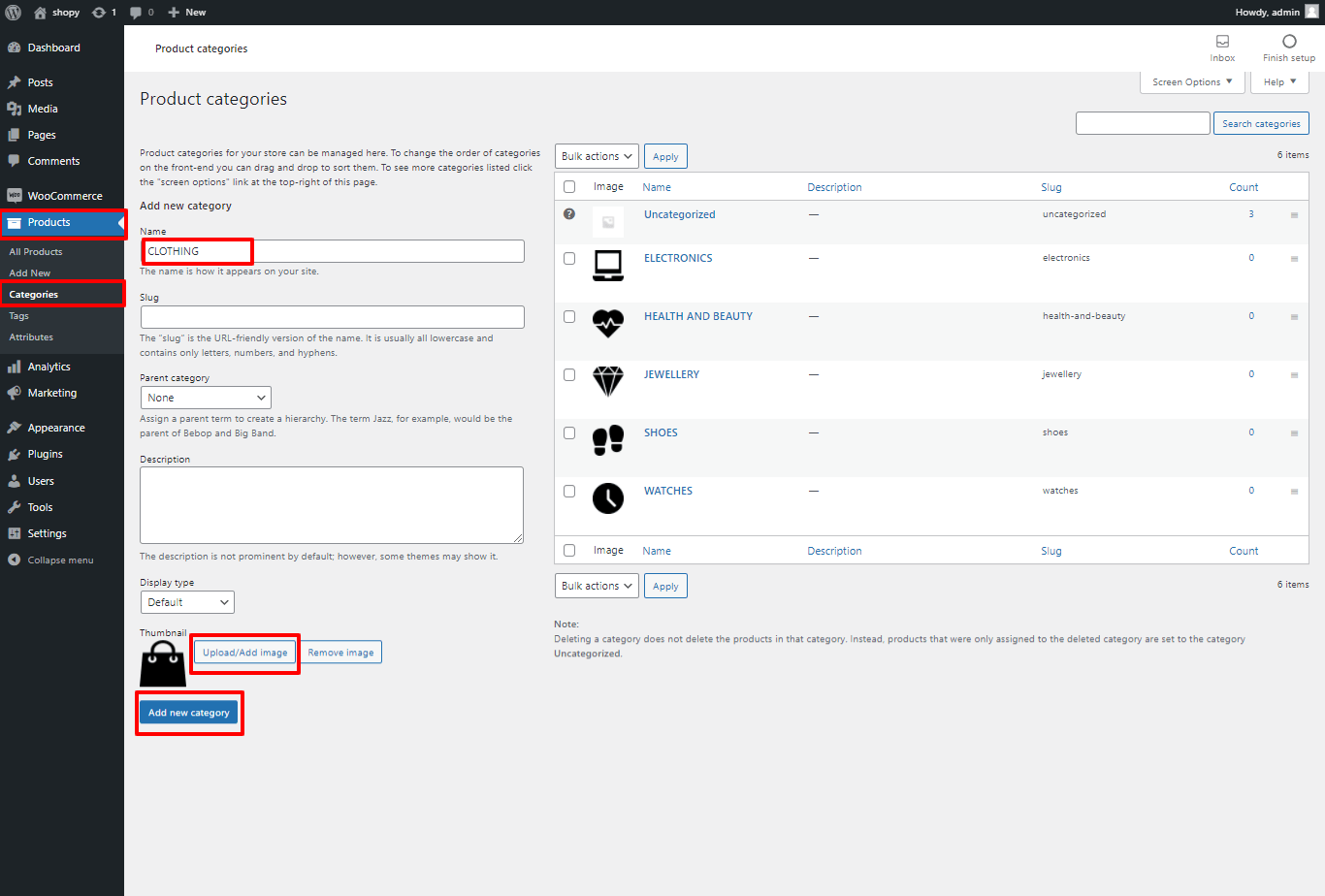 2. Go to Dashboard >> Products >> Categories
