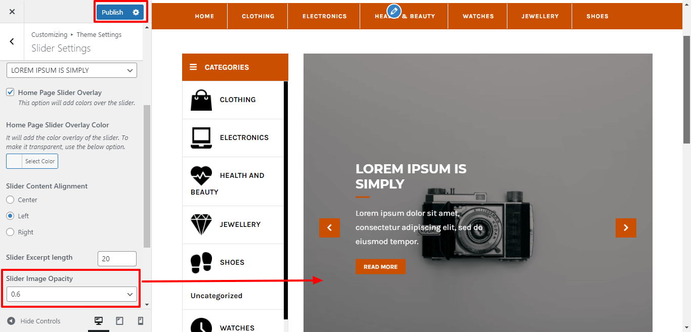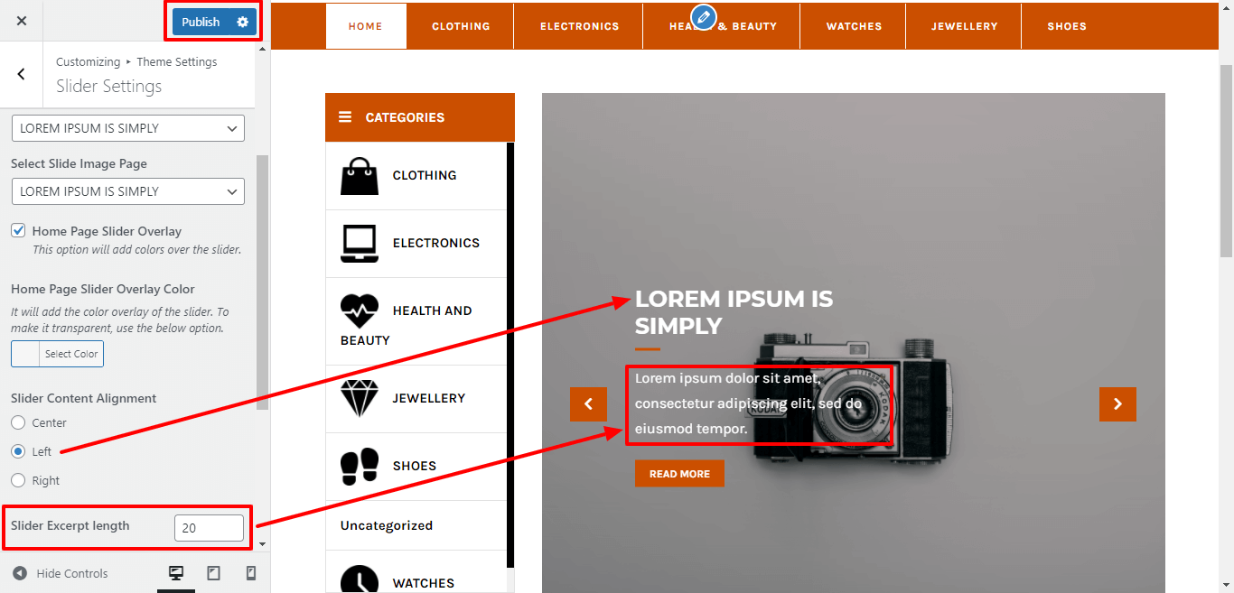 You can select the slider content alignment and select the slider excerpt length for slider content.