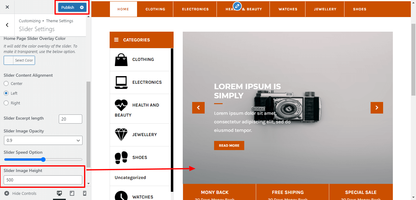 Here you can add Image Hight of slider for the theme.