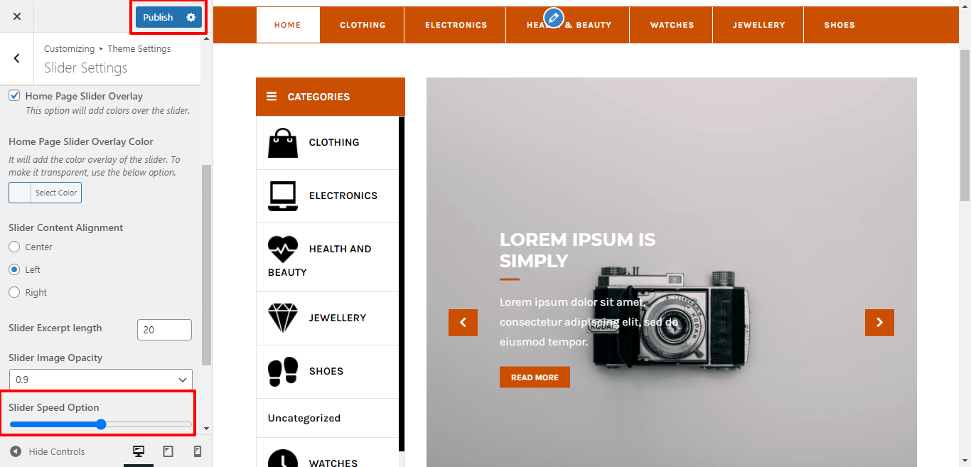 Here You have an option to the speed of slider to load slider fast for the theme.
