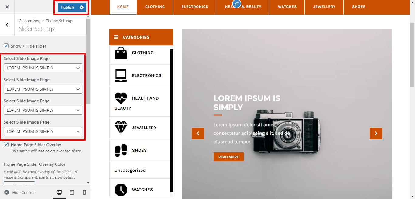 Their customizer settings are like below screenshot.
