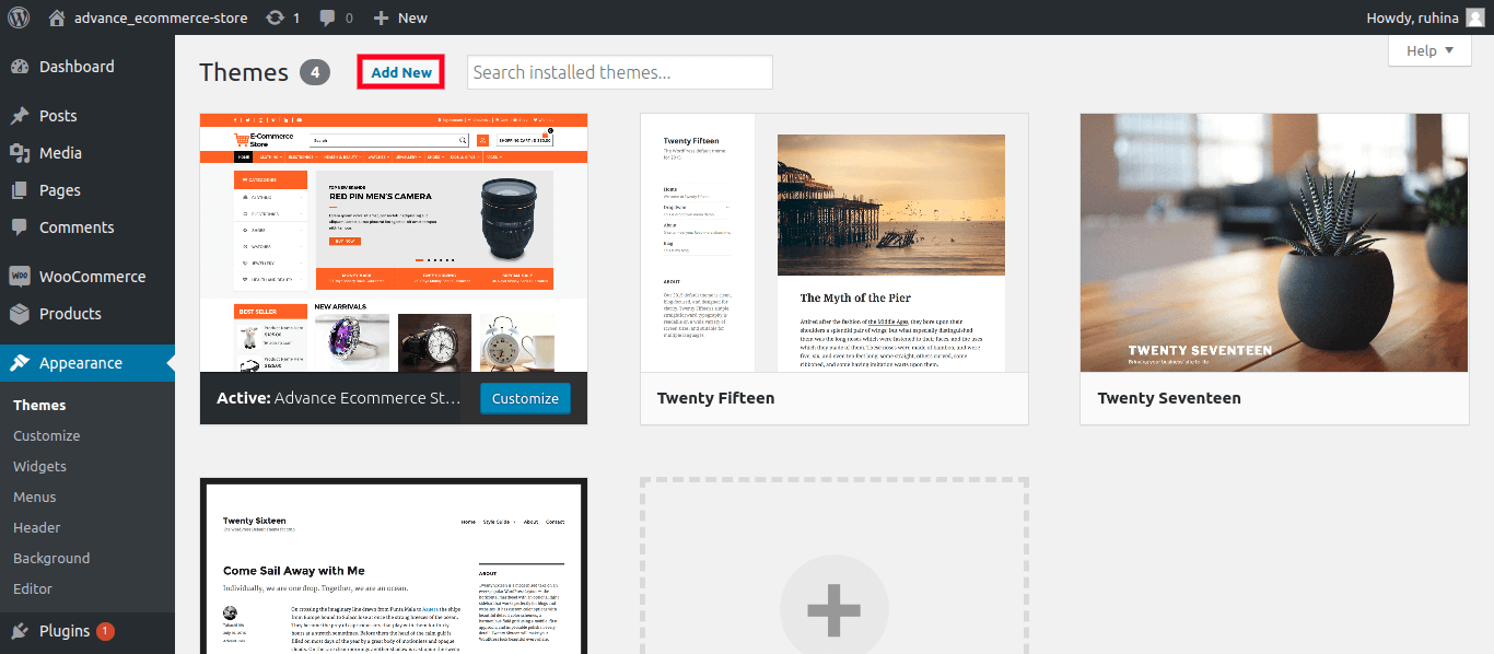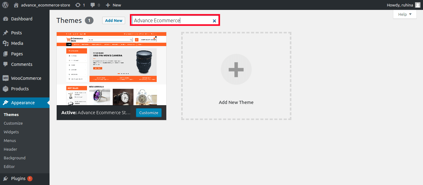 Based on your search, you will see a single theme or a list of themes that met your criteria. In our case, we searched for the theme Advance Ecommerce Srore.