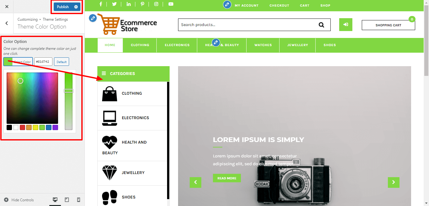 In order to proceed with theme color option, follow the below steps.