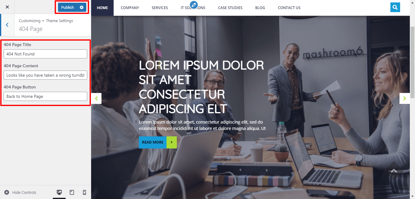 Go to Appearance >> Customize >> Themes Settings >> 404 Page