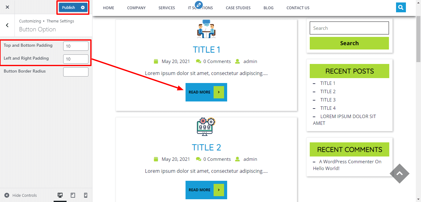 Here you can Give the Top-Bottom, Left-Right , Padding to the Button for the themes.