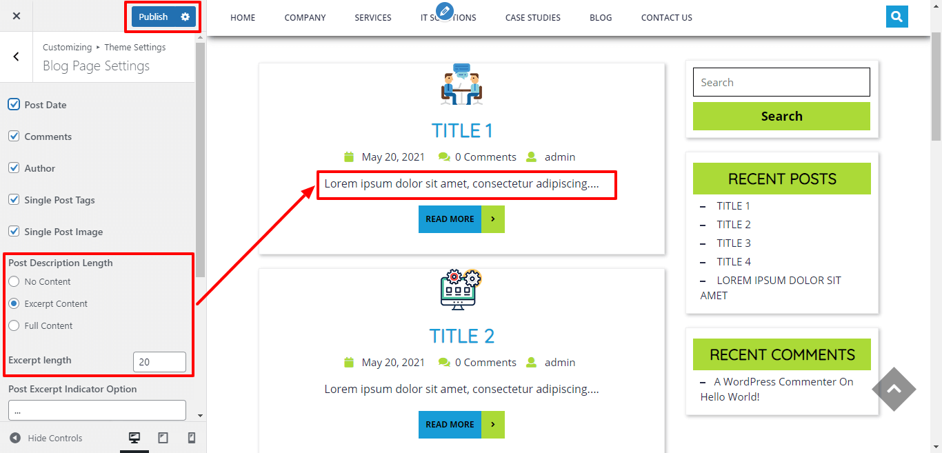 Here you can change excerpt length blog post content.