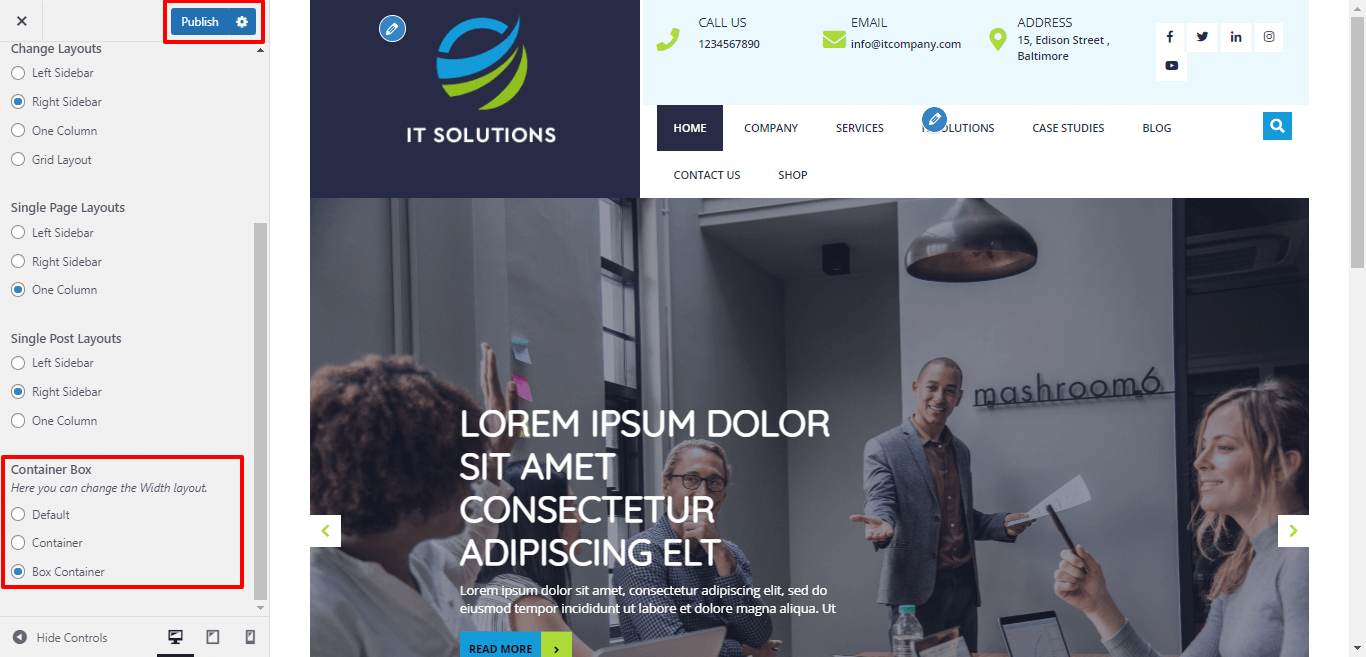 Here You can select the Box-Container layout for the themes.