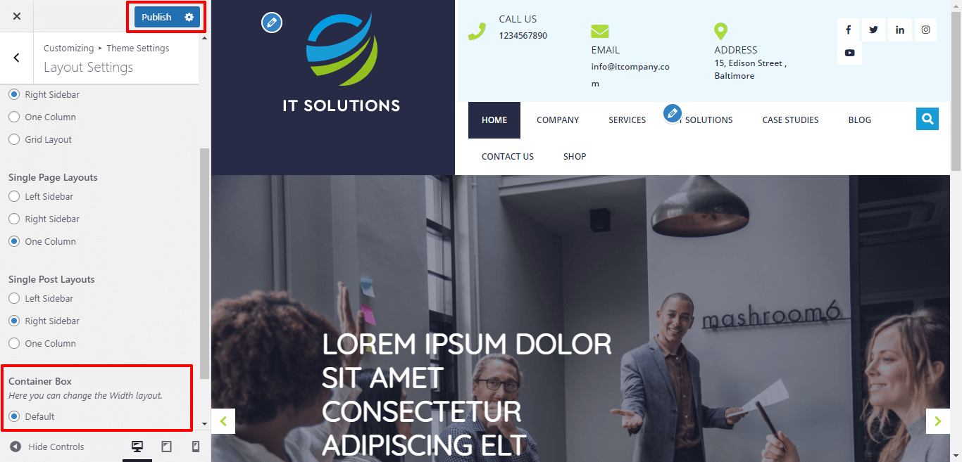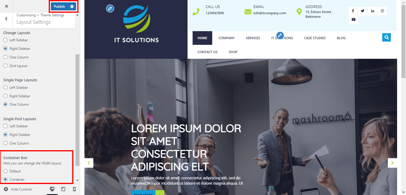 Here You can select the Container layout for the themes.