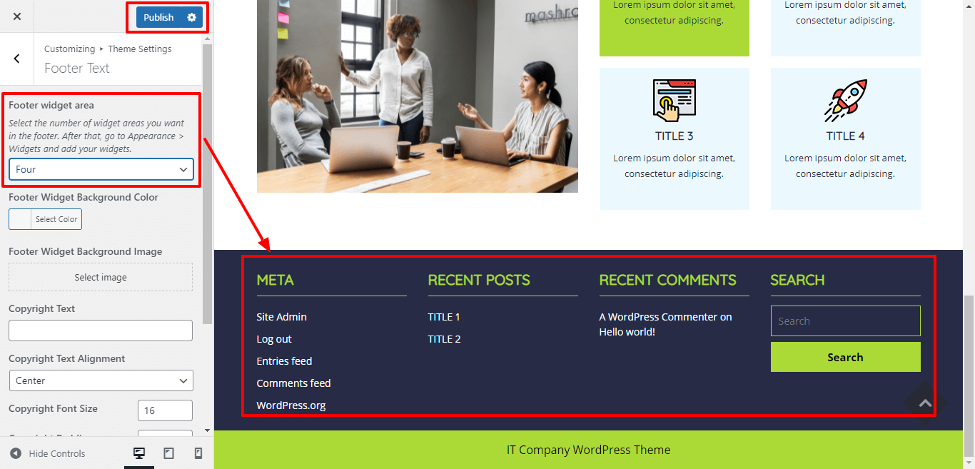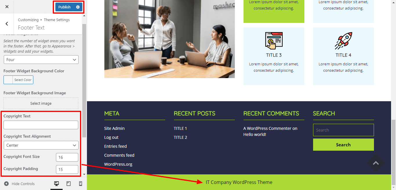 Here you can add the copyright text , copyright text alignment, copyright font size and padding for copyright text.