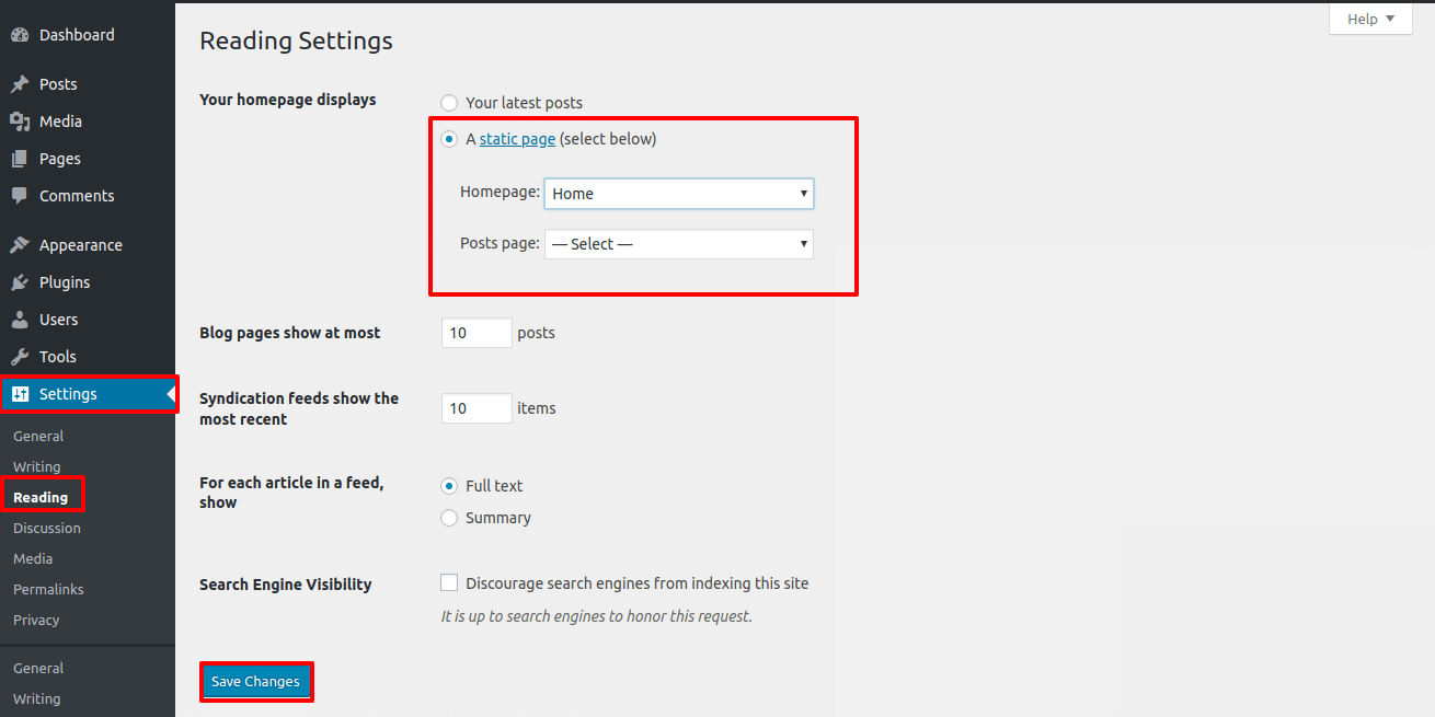 2. Set the front page: Go to Setting >> Reading