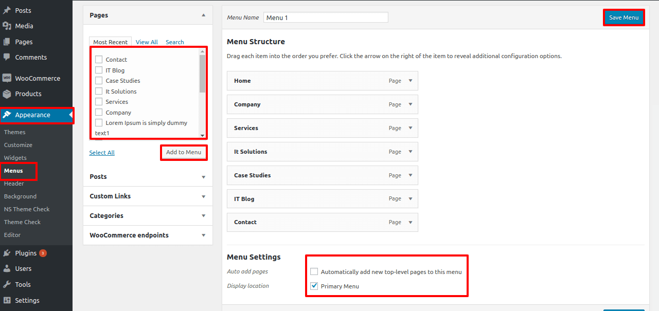 Give a name to your menu in Menu name and click save menu button.