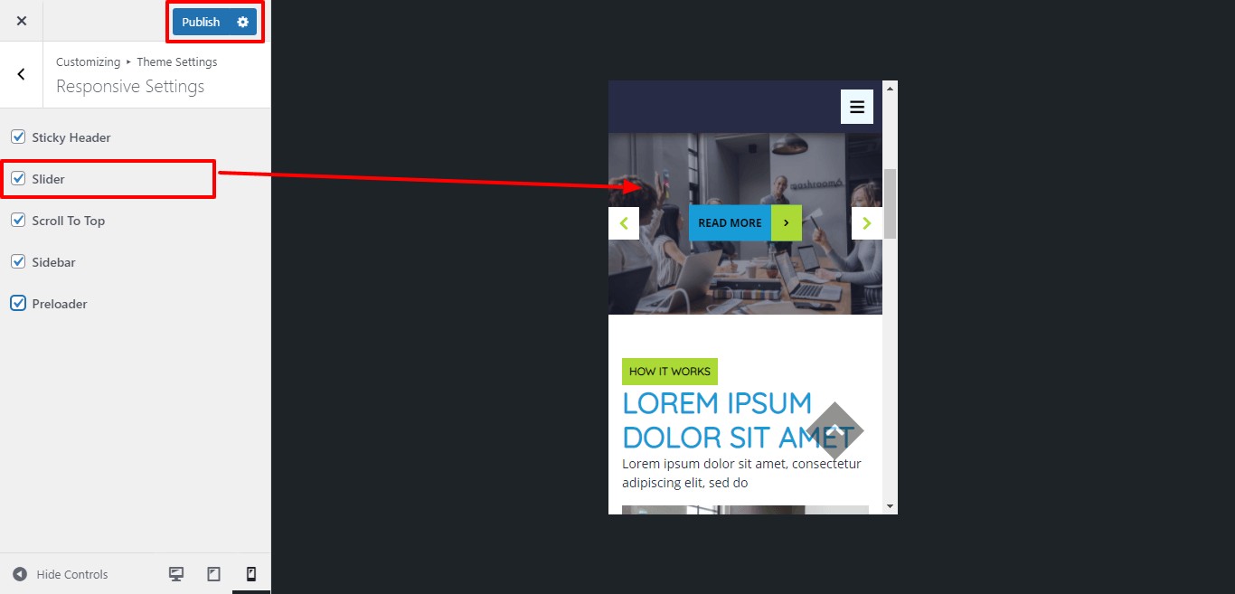 For Enable / Disable slider for mobile device or responsive media click on checkbox .