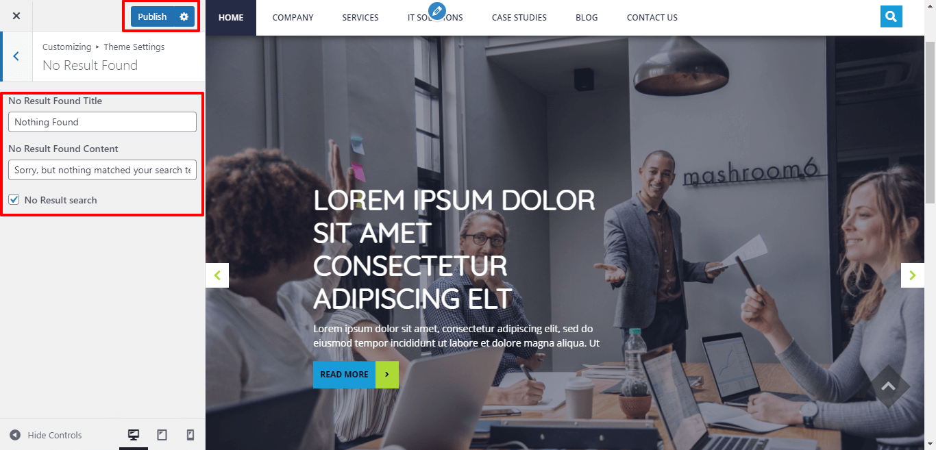Go to Appearance >> Customize >> Themes Settings >> No Result Found